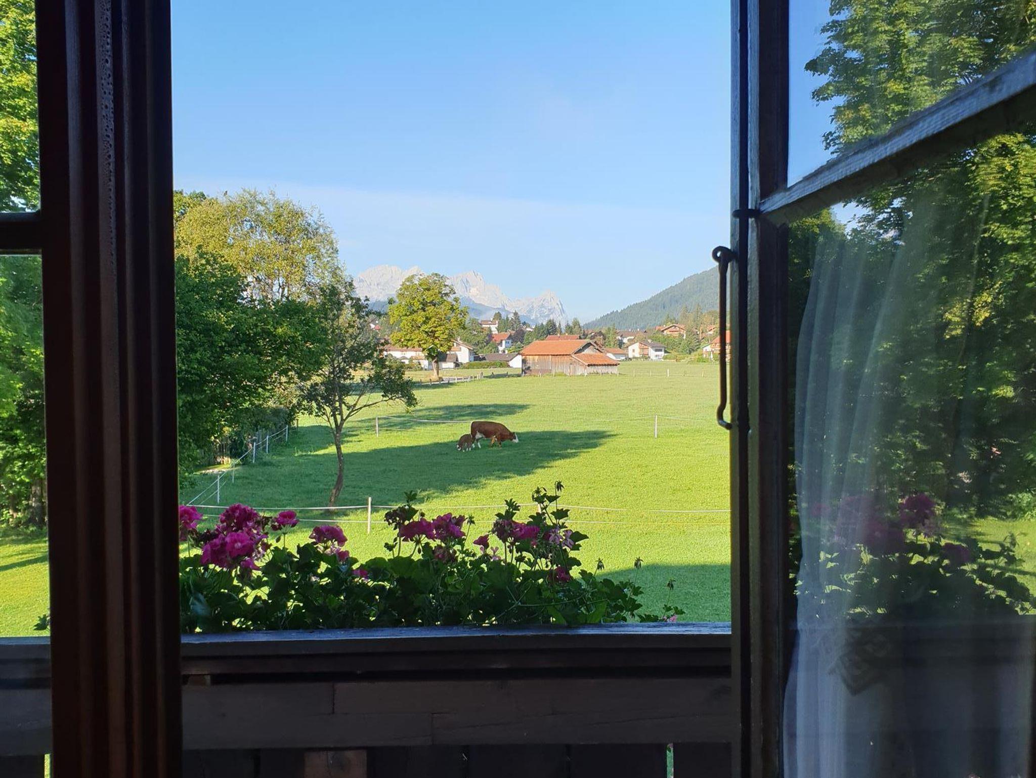Die komfortablen Ferienwohnungen für 2-3 Personen befinden sich auf einem kleinen Bauernhof in den Bergen. Viel Platz in einem sehr großen Garten, ist äußerst angenehm und entspannend. Schon beim Frühstück können Sie den Blick auf die Zugspitze oder den Karwendel geniesen. Jede Wohnung verfügt über eine komplett ausgestattete Küche oder Wohnküche, sep.Schlafzimmer mit Kleiderschrank, DU/WC, TV, WLAN und Balkon. Der Parkplatz für Ihr Auto befindet sich direkt am Haus. Außerdem gibt es einen absperrbaren Einstellplatz für Fahrräder, e-bikes, Ski oder Schlitten, sowie eine Unterstellmöglichkeit für Motorräder. Die zentrale Lage ist idealer Startpunkt für Touren jeglicher Art. Wir würden uns freuen, Sie als Gast bei uns begrüßen zu dürfen.