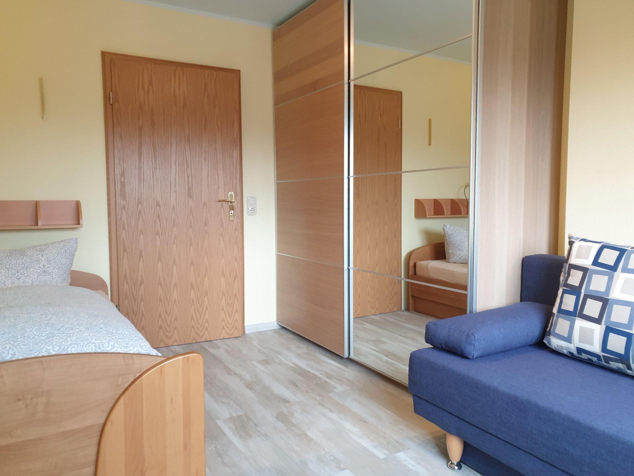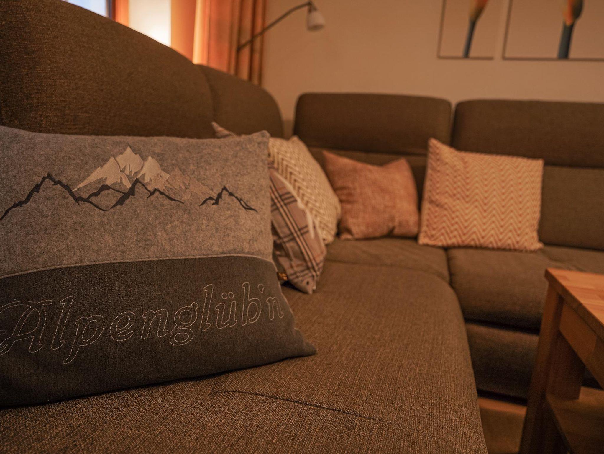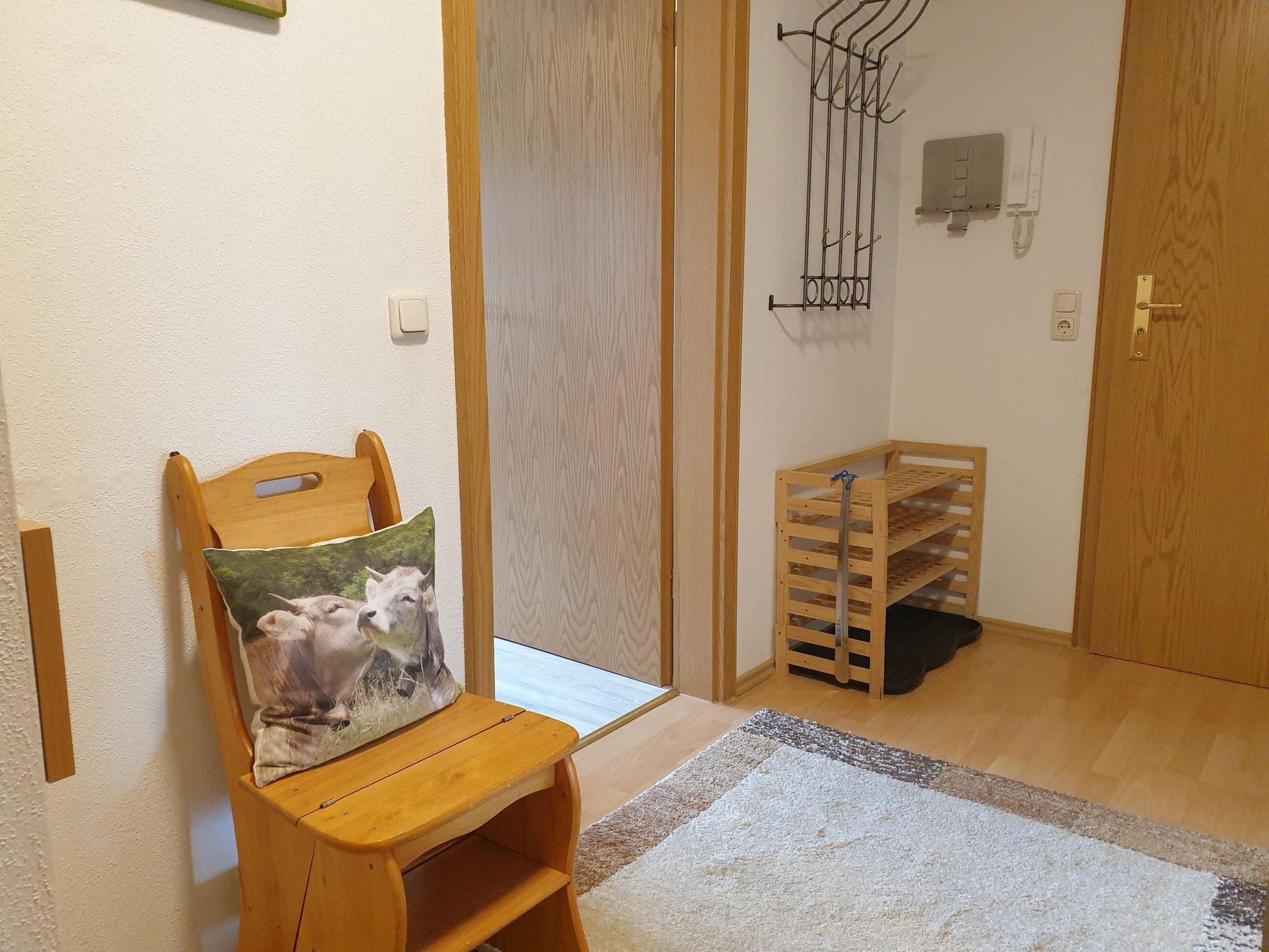 Die gepflegte 3-Zimmerwohnung im ersten Stock im Haus Abendsonne mit unverbautem. grandiosen Panoramablick auf die umliegenden Berge verfügt über zwei separate Schlafzimmer und ein großes Wohnzimmer mit Couch/Schlafcouch.