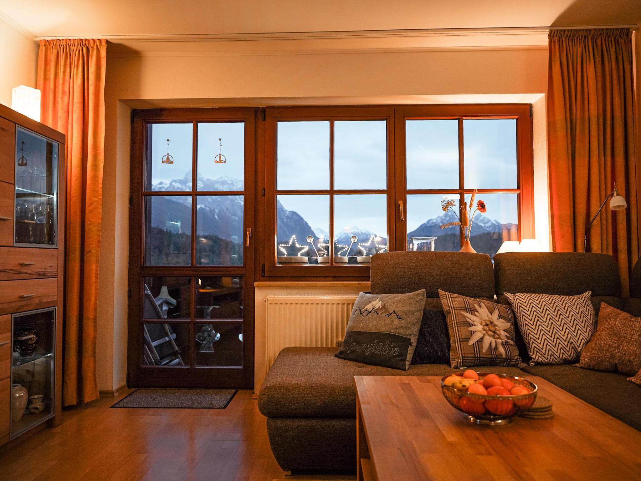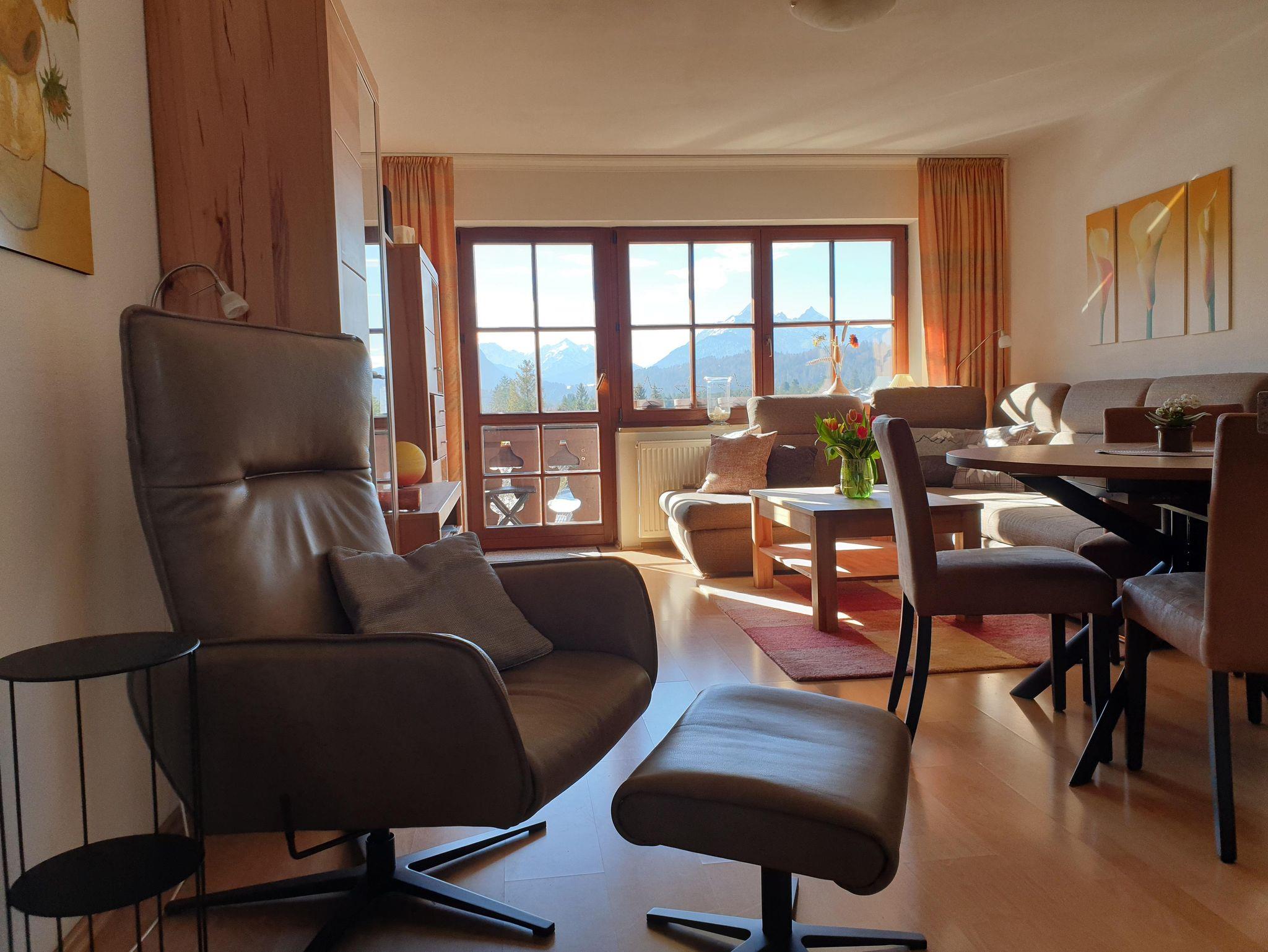 Die Wohnung befindet sich in sonniger Lage am Ortsrand von Krün mit grandioser Ausblick auf die Alpenwelt Karwendel.