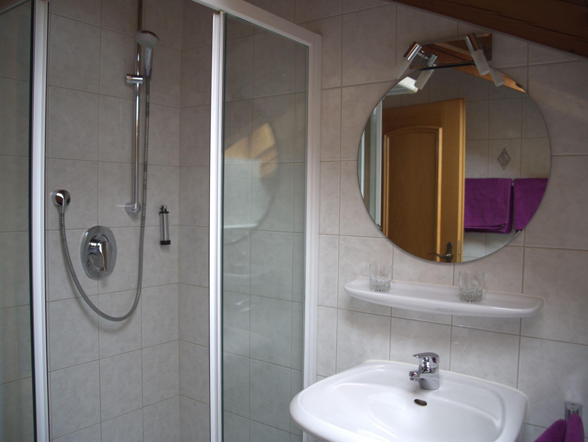 Unser Bad besteht aus Dusche/WC und Waschbecken. Ein Fön ist vorhanden.