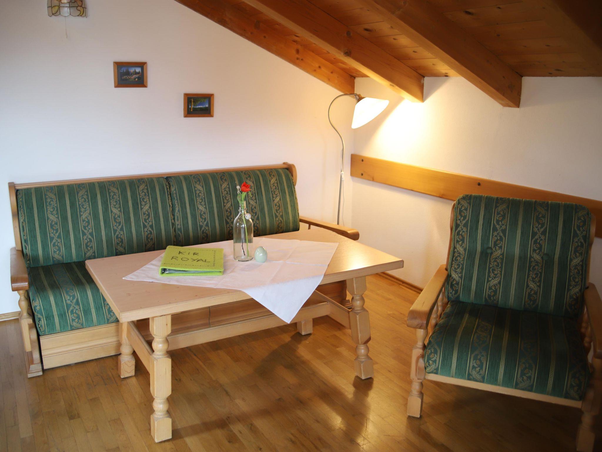 Das Schlafzimmer besteht aus Fichtenholz für Ihren erholsamen Schlaf. Die Sitzecke des Wohnraumes bietet