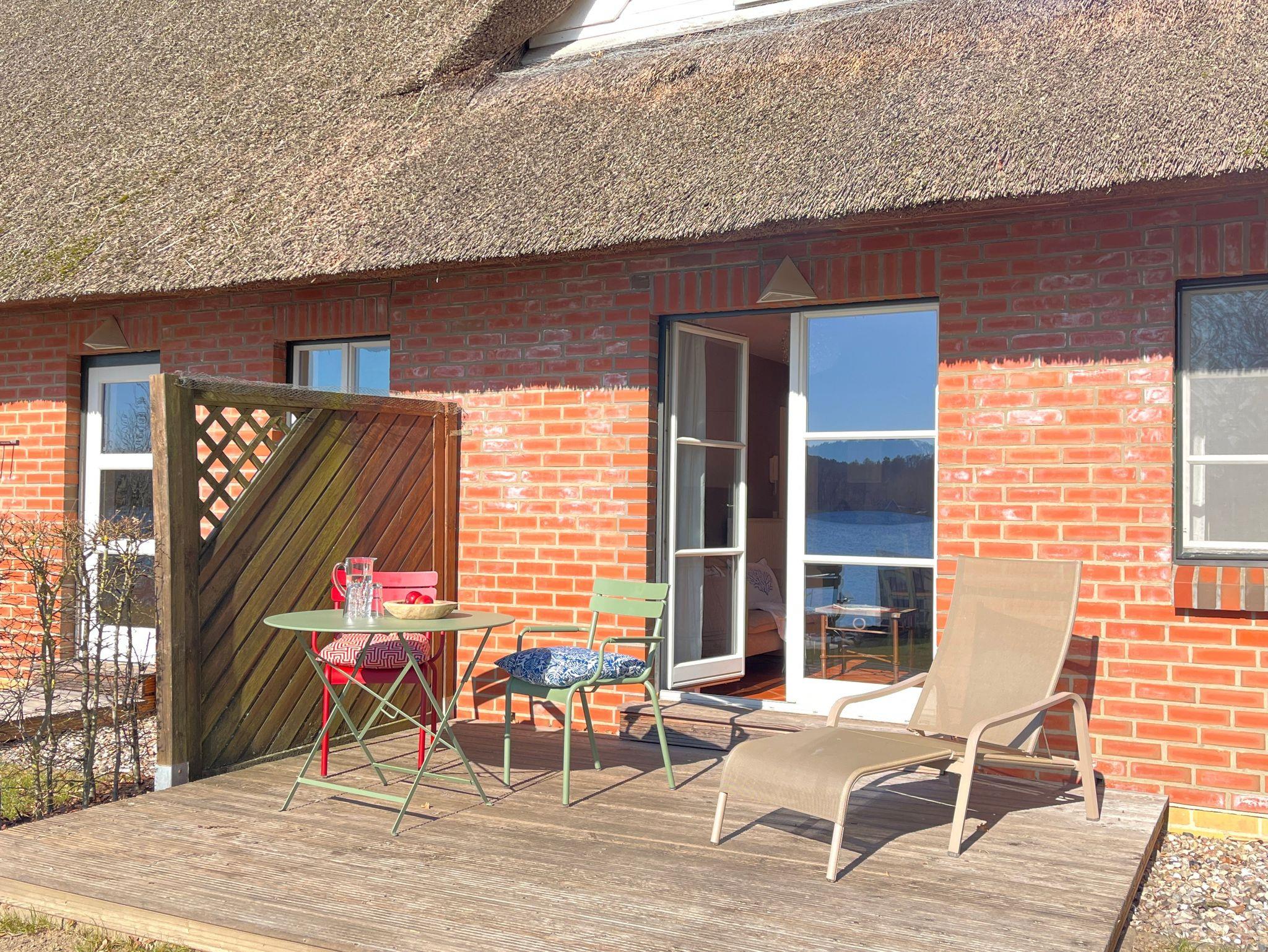 Das romantisch reetgedeckte Haus beherbergt 6 individuelle, komfortable Ferienwohnungen. Auf dem großzügig, malerisch gelegenen Grundstück befinden sich außerdem ein weiteres reetgedecktes Ferienhaus in typisch skandinavischer Holzbauweise.