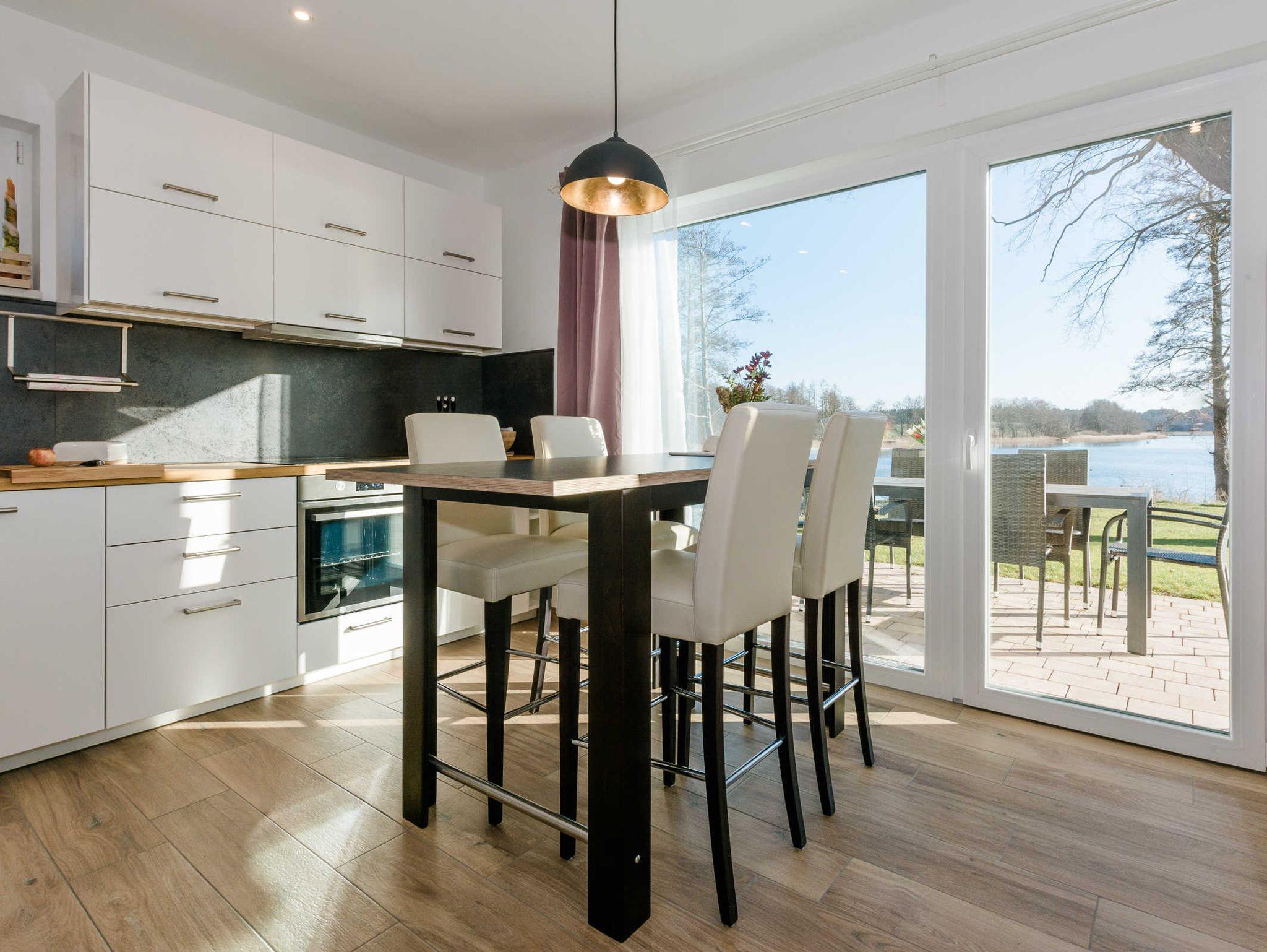 In dem lichtdurchfluteten Wohn- Essbereich können Sie es sich gemütlich machen und den herrlichen Ausblick über den Altdorfer See genießen.