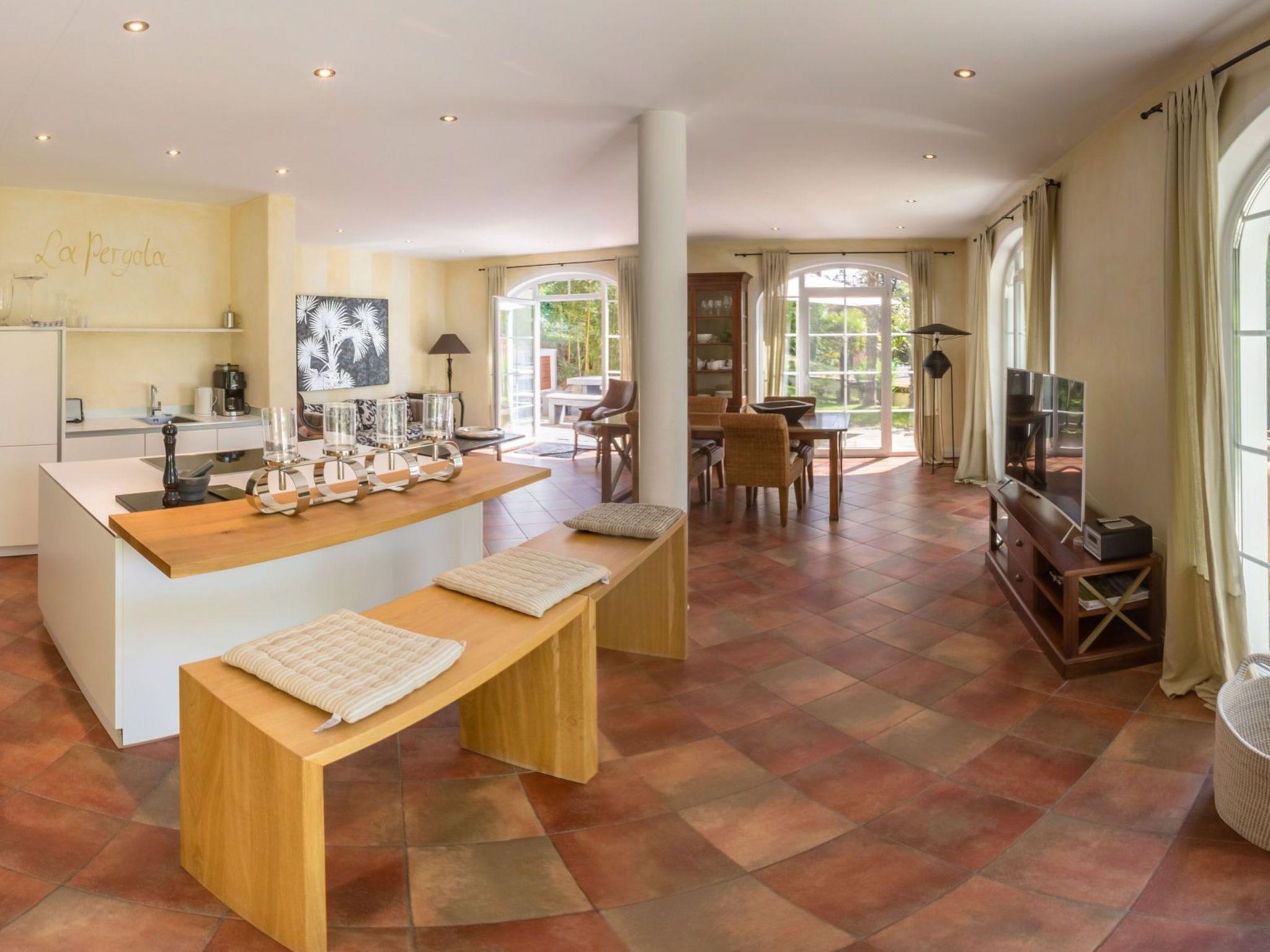 The 125m² garden flat impresses with its comfortable furnishings in warm colours that create a homely ambience. With large arched windows and seven terrace exits, the flat is flooded with natural light. Two separate bedrooms with double beds promise restful nights. The 60m² open-plan living and dining area with comfortable seating and flat-screen TV invites you to relax. The fully equipped kitchen offers everything your heart desires - from a Nespresso/coffee machine to a dishwasher. A spacious bathroom with bathtub and separate rainforest shower, underfloor heating and a separate WC round off the offer. High-quality entertainment electronics such as Loewe HD TV with internet radio, a Sonoro sound system with CD player and an iPod docking station are also available.