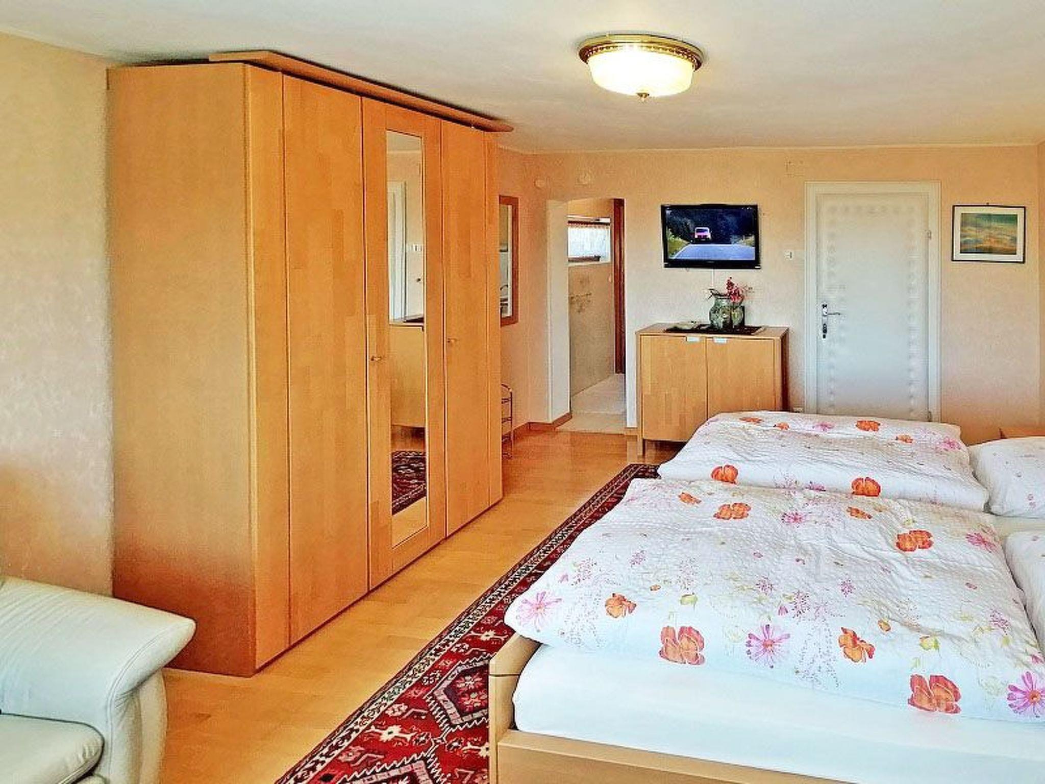 The 25 m² holiday flat is located on the first floor and has a combined living room and bedroom with a wide window front offering a breathtaking view of Lake Constance and the surrounding mountains. A separate mini-kitchen with microwave, electric cooker and fridge with freezer compartment, adjoining a lockable bathroom with shower, WC and washbasin, is at your disposal. The facilities are complemented by WLAN and cable TV, for a comfortable and carefree stay.