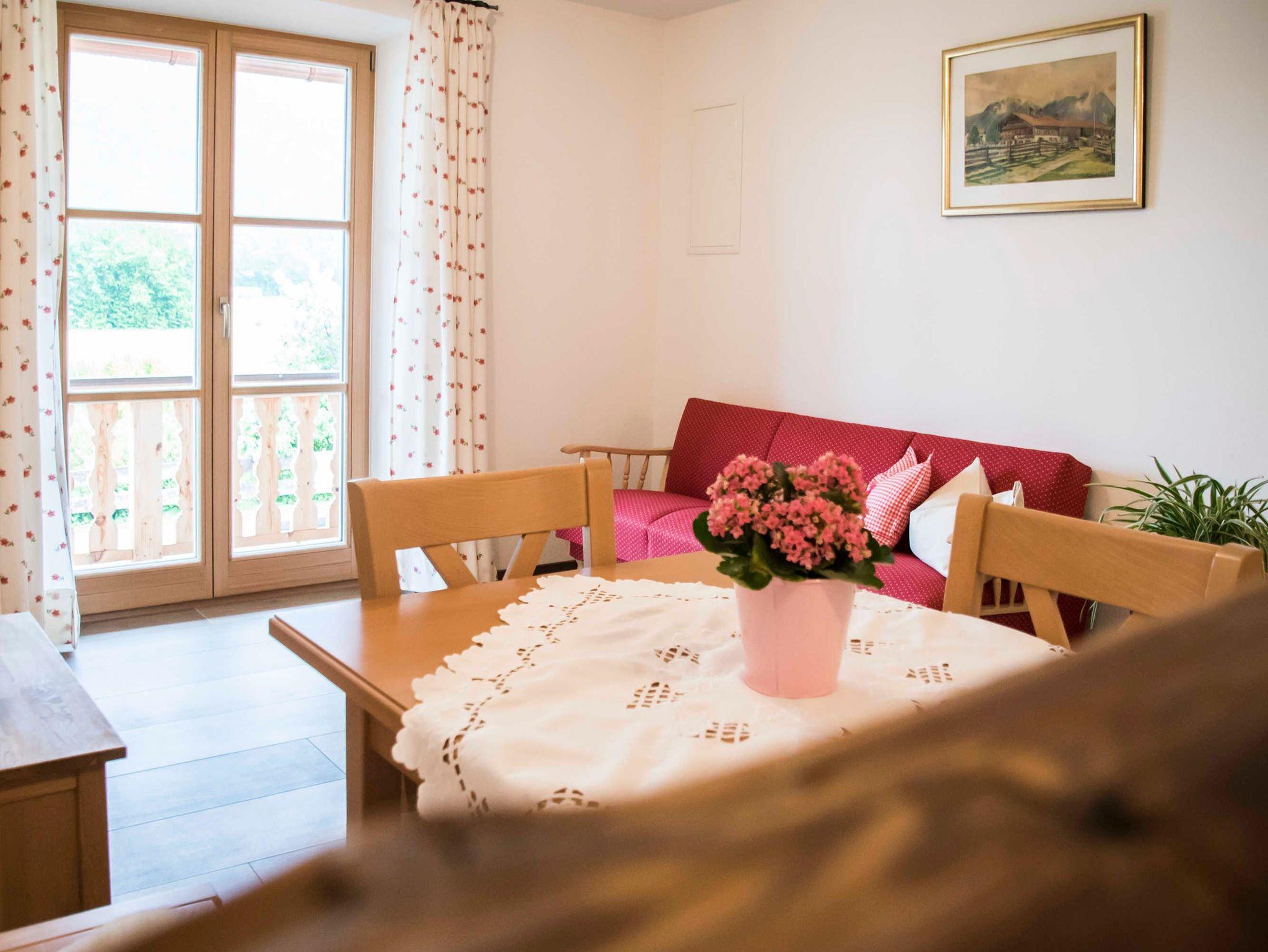 In der mit vier Sternen zertifizierten 58qm-Wohnung ?Sepp?, im Obergeschoss, finden Sie ausreichend Platz für 2 bis 3 Personen und Kind. Es stehen Ihnen getrennte Wohn- und Schlafräume, Wohnküche, Badezimmer, Föhn, und SAT-TV zur Verfügung. Nutzen Sie unseren Semmelservice und genießen Sie Ihr Frühstück auf dem großzügigen, sonnigen Balkon. WLAN vorhanden
