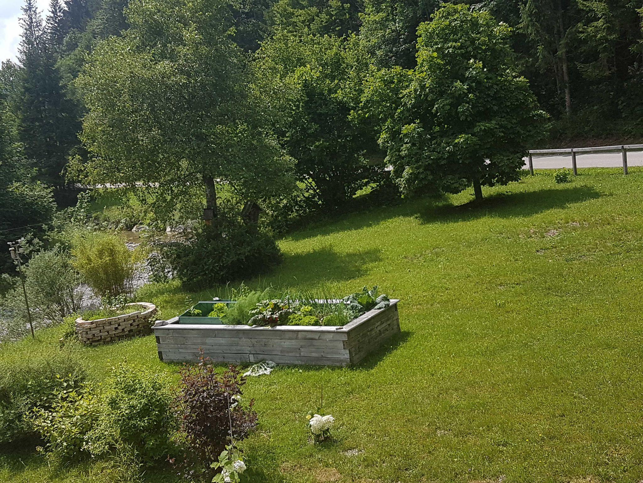 Da die Ferienwohnung nicht über einen Balkon verfügt, finden Sie auf der Terrasse eine angenehme Sitzgelegenheit im Grünen.