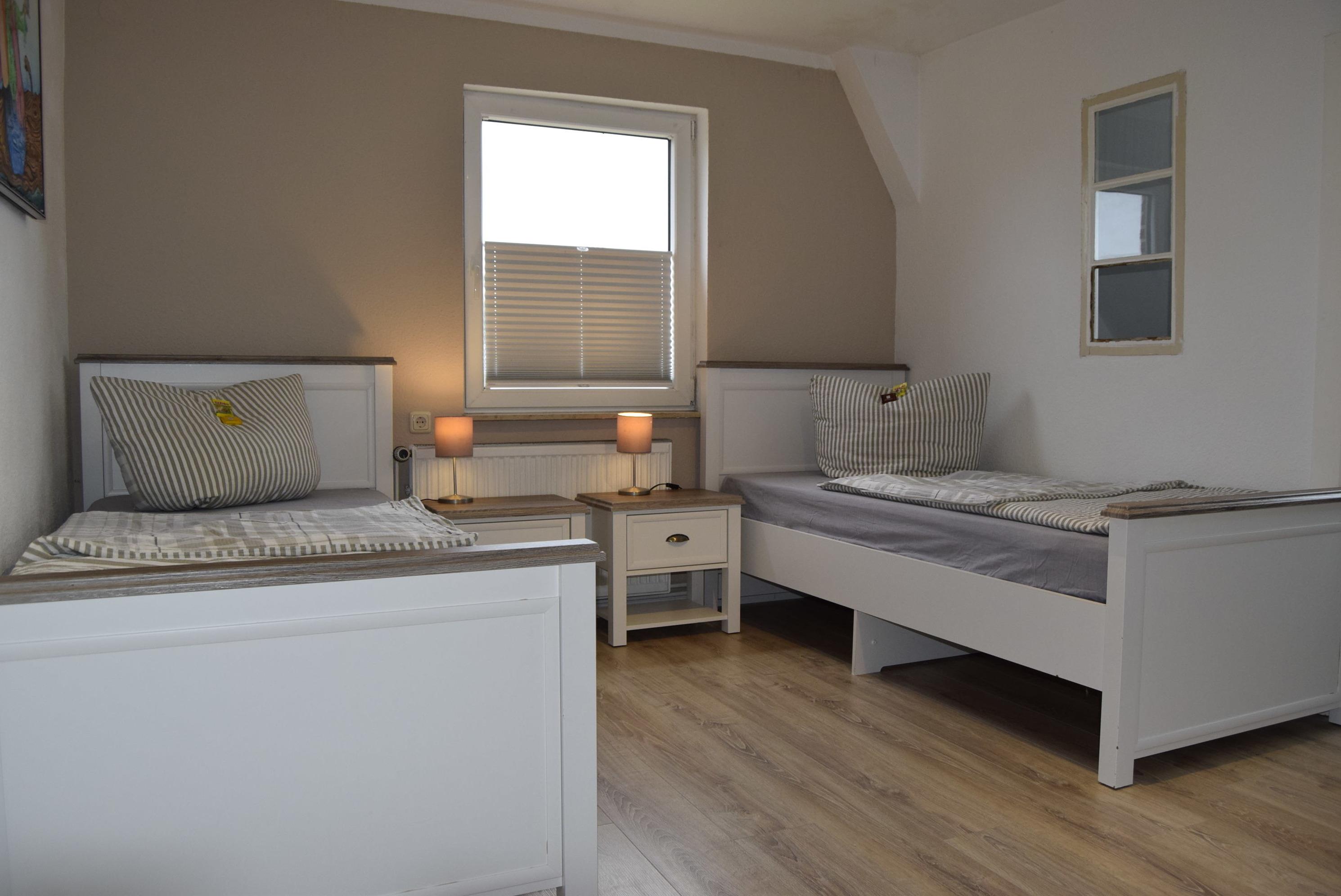Es stehen Ihnen 2 große Schlafzimmer mit jeweils einem Doppelbett (180 x 200) sowie 2 Einzelbetten (90 x 200) zur Verfügung.