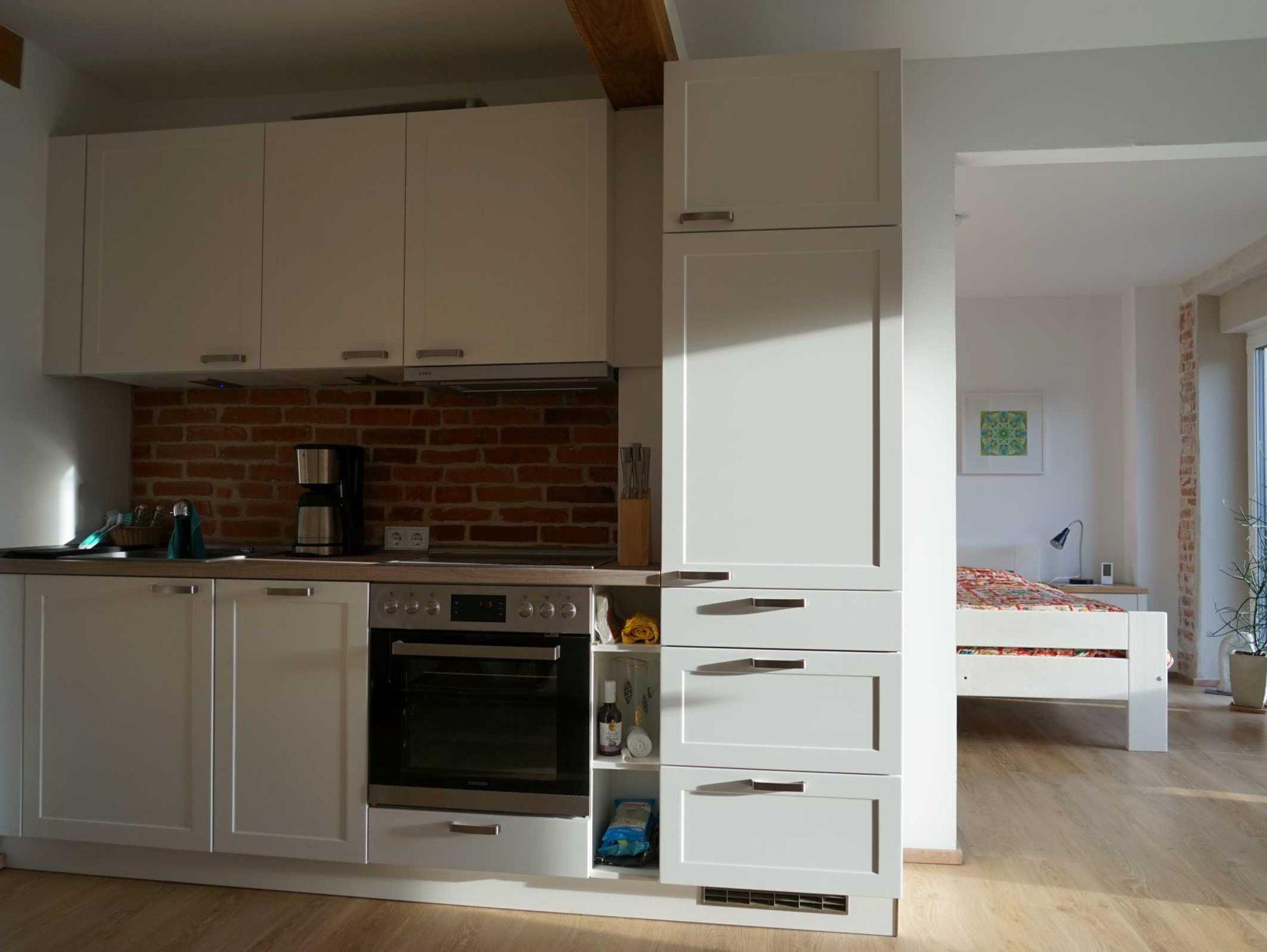 • räumlich abgetrennter Schlafbereich mit Doppelbett (160 x 200); Bettwäsche bei der Gastgeberin zu buchbar