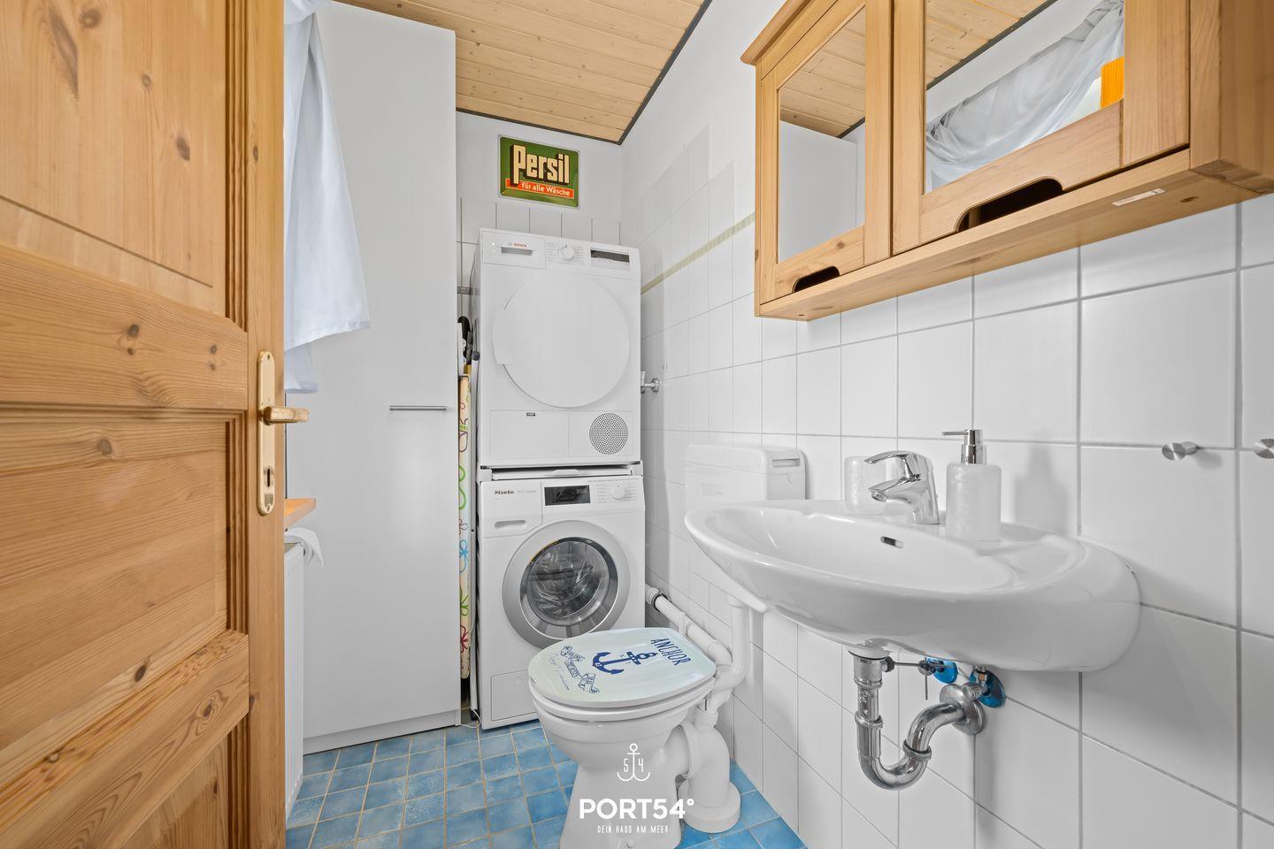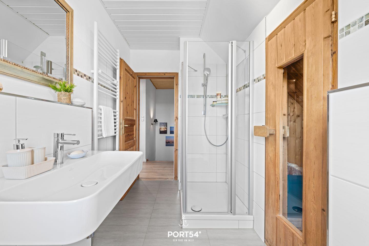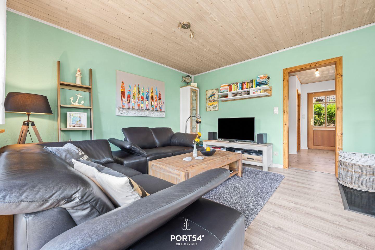Unser Ferienhaus "Pfefferminza" ist das perfekte Urlaubsdomizil für Familien und Freunde, die gemeinsam unvergessliche Momente erleben möchten. Auf zwei Etagen erwartet Sie eine maritime Einrichtung, die sofort Urlaubsstimmung aufkommen lässt. Mit großzügigem Platz für bis zu fünf Personen und vielen Extras für die Kleinen ist das Haus besonders familienfreundlich. Das offene Wohnzimmer lädt mit seiner gemütlichen Sofagarnitur und einem bequemen Sessel zum Entspannen ein. Für Unterhaltung ist bestens gesorgt: Neben einer Auswahl an Büchern stehen Ihnen ein Flachbild-TV mit Blu-ray-Player und eine Musikanlage zur Verfügung. In den kälteren Monaten sorgt der Kaminofen für wohlige Wärme. Angrenzend befindet sich die moderne Küche, die dank Espressomaschine, Milchaufschäumer und vielen weiteren Geräten hervorragend ausgestattet ist. Hier können Sie nicht nur kulinarische Köstlichkeiten zaubern, sondern dabei auch den herrlichen Blick in den Garten genießen. Der Essbereich ist perfekt für gemeinsame Familienmahlzeiten oder gesellige Spieleabende mit den hauseigenen Spielen geeignet. An sonnigen Tagen lockt die Terrasse mit gemütlichen Sitzgelegenheiten, und der Holzkohlegrill sorgt abends für gesellige Barbecue-Momente. Im Obergeschoss befindet sich das Tageslicht-Duschbad, das mit einem kleinen Kosmetikspiegel, einem Handtuchheizkörper und einem Föhn ausgestattet ist. Ein echtes Highlight ist die hauseigene Finnische Sauna – ideal für entspannte Wellnessmomente nach einem erlebnisreichen Tag. Die Schlafräume befinden sich ebenfalls Obergeschoss und bieten erholsamen Schlaf für die ganze Familie. Das Hauptschlafzimmer verwöhnt Sie mit einem komfortablen Boxspringbett in King-Size-Größe (200x200cm), einem geräumigen Kleiderschrank und Verdunkelungsmöglichkeiten. Das zweite Schlafzimmer ist ein Paradies für Kinder: Ein gemütliches Etagenbett (je 90x200cm), Kinderspielzeug, ein kleiner Tisch und ein Kindersessel machen diesen Raum zum Lieblingsort der Kleinen. Für die jüngsten Gäste stehen ein Kinderreisebett, ein Hochstuhl, ein Kindertritthocker und ein Töpfchen bereit. Ein drittes Schlafzimmer unter den Dachschrägen bietet mit einem Einzelbett einen weiteren Schlafplatz. Ein besonderes Plus: Unsere Ferienhäuser "Pfefferminza" und "Pippilotta" liegen direkt nebeneinander und können zusammen gebucht werden – ideal für Großfamilien oder Urlaub mit Freunden. Ihr Auto parken Sie bequem auf dem Grundstück, und auch mitgebrachte Fahrräder finden sicher Platz im Fahrradständer vor dem Haus. Genießen Sie einen entspannten Familienurlaub im Ferienhaus "Pfefferminza"!