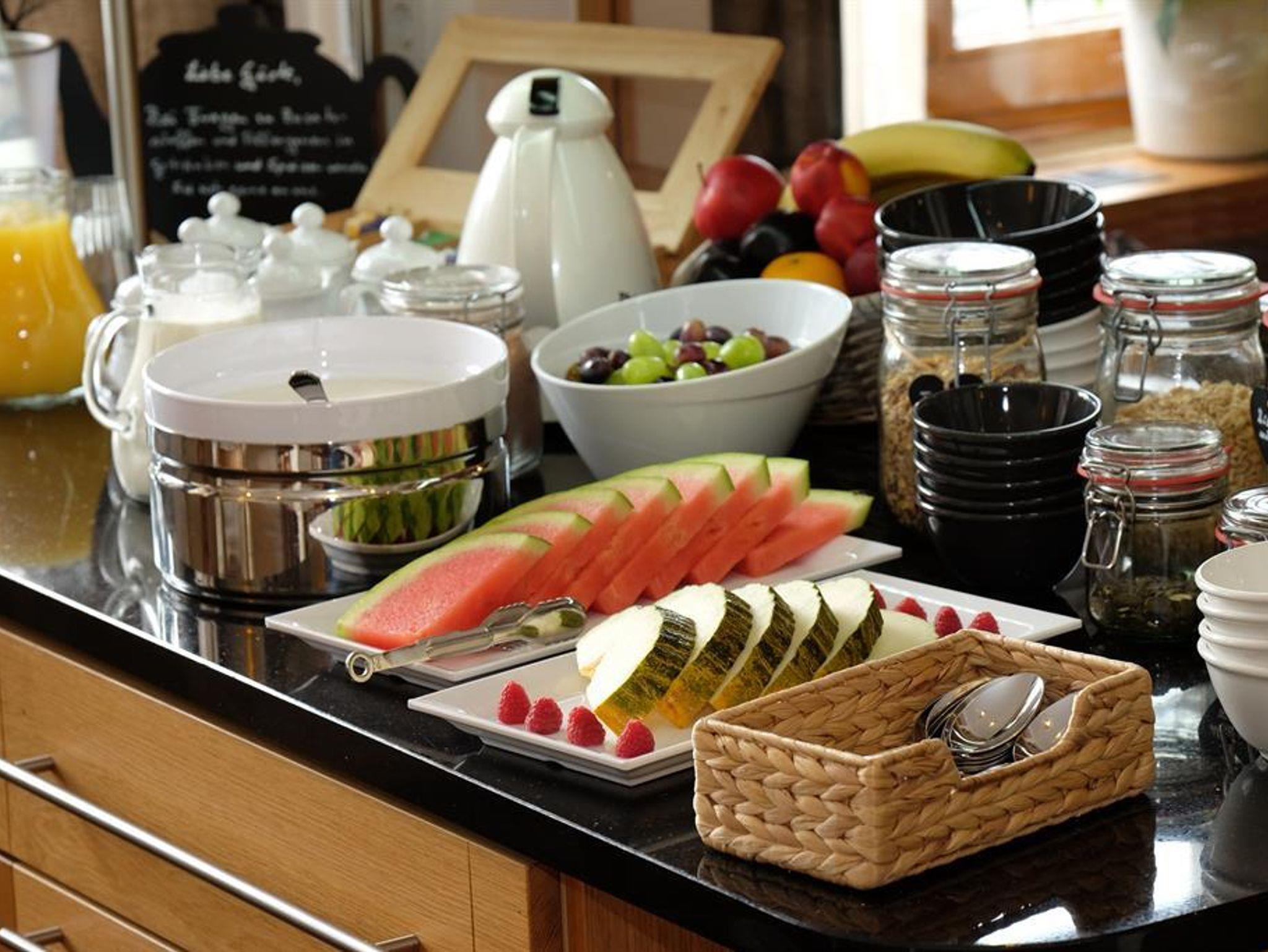 Genießen Sie das Eifeler Frühstücksbuffet oder ein Schlemmer-3-Gänge Menü am Abend mit Produkten vom eigenen Hof.