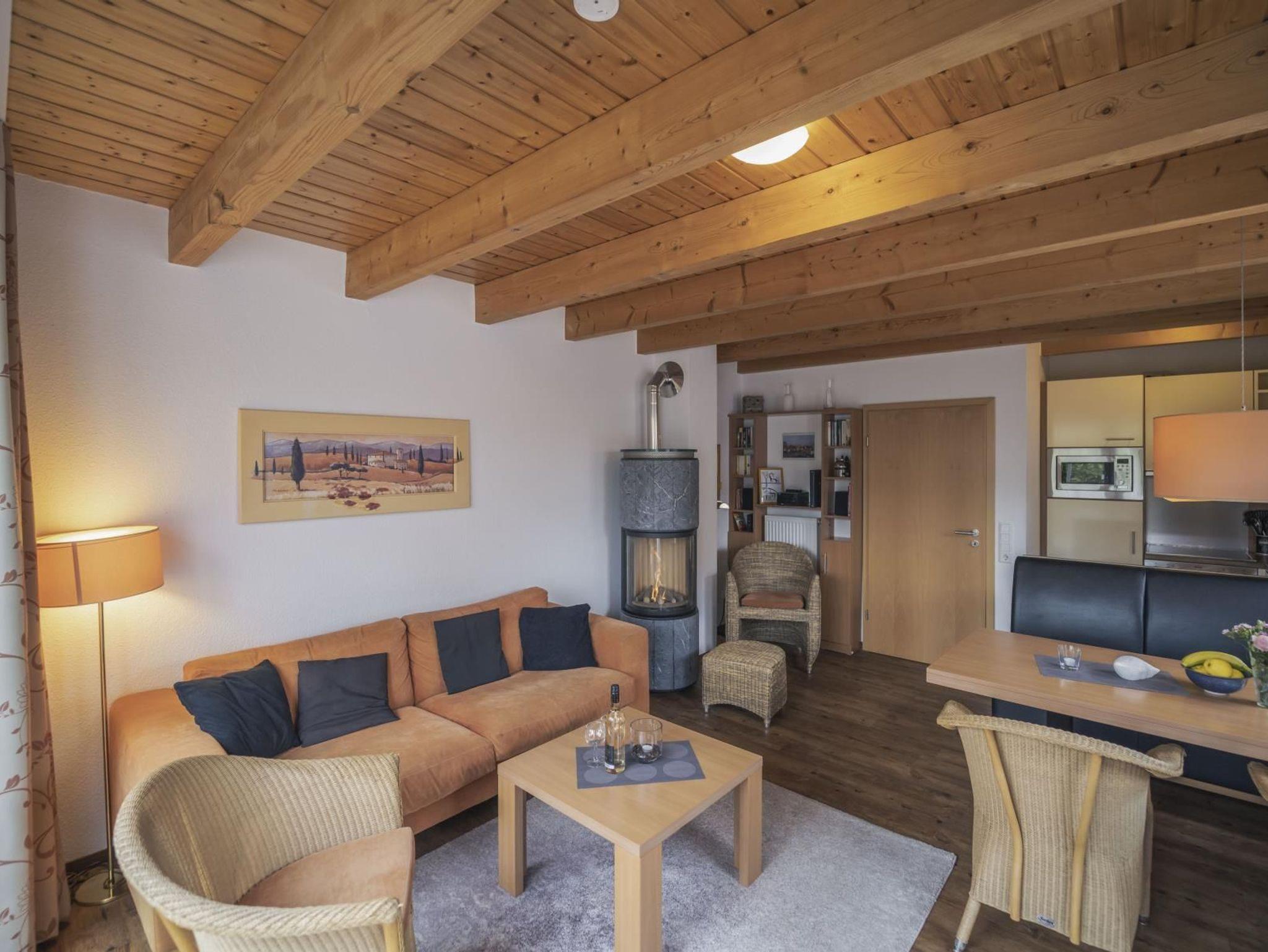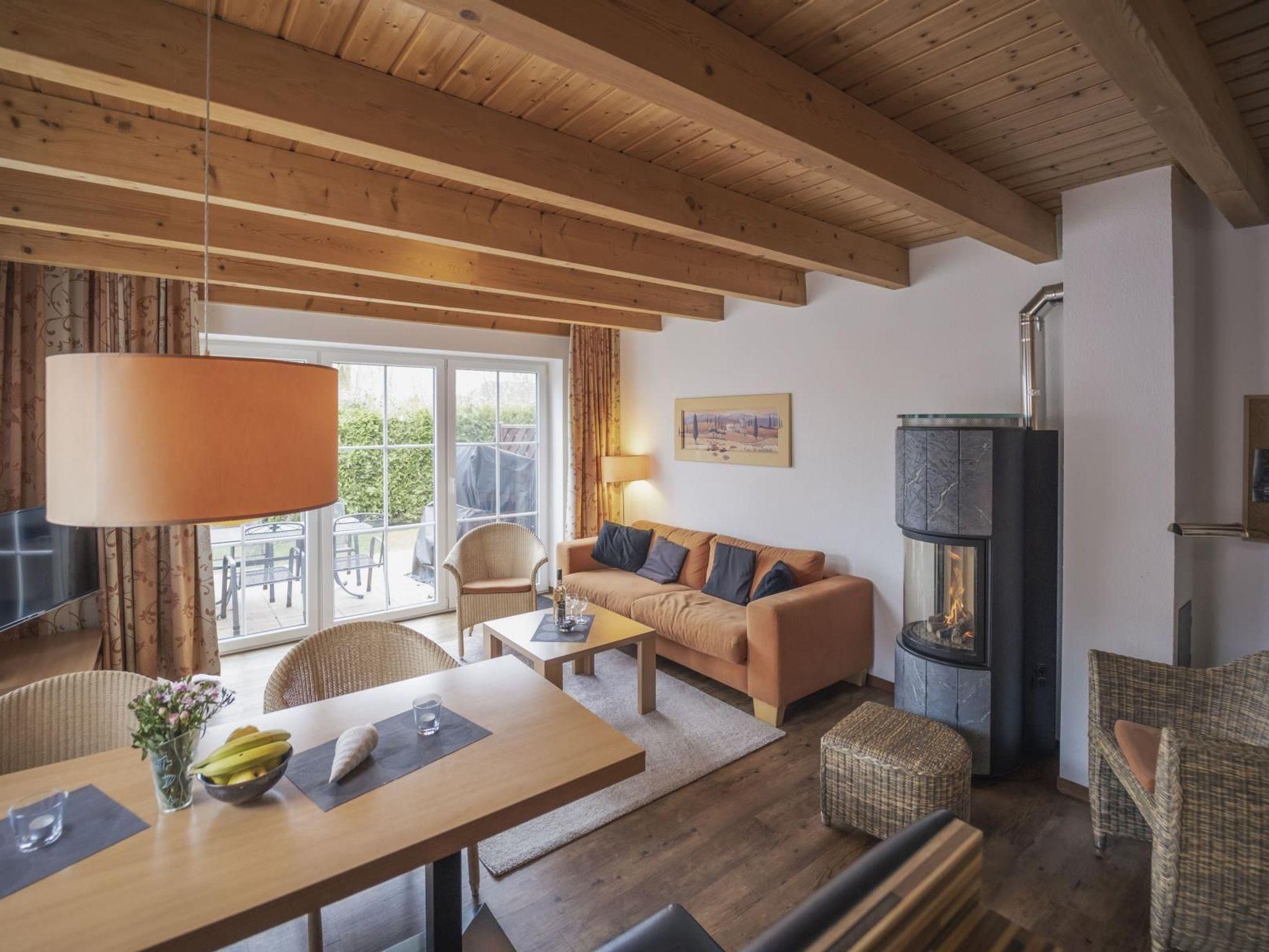 gemütliches Wohnzimmer mit einem Gas-Kaminofen (Sie regulieren die Flamme per Fernbedienung), hinter