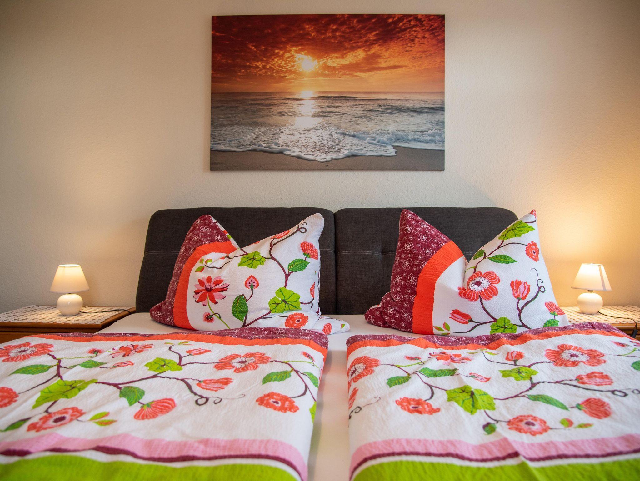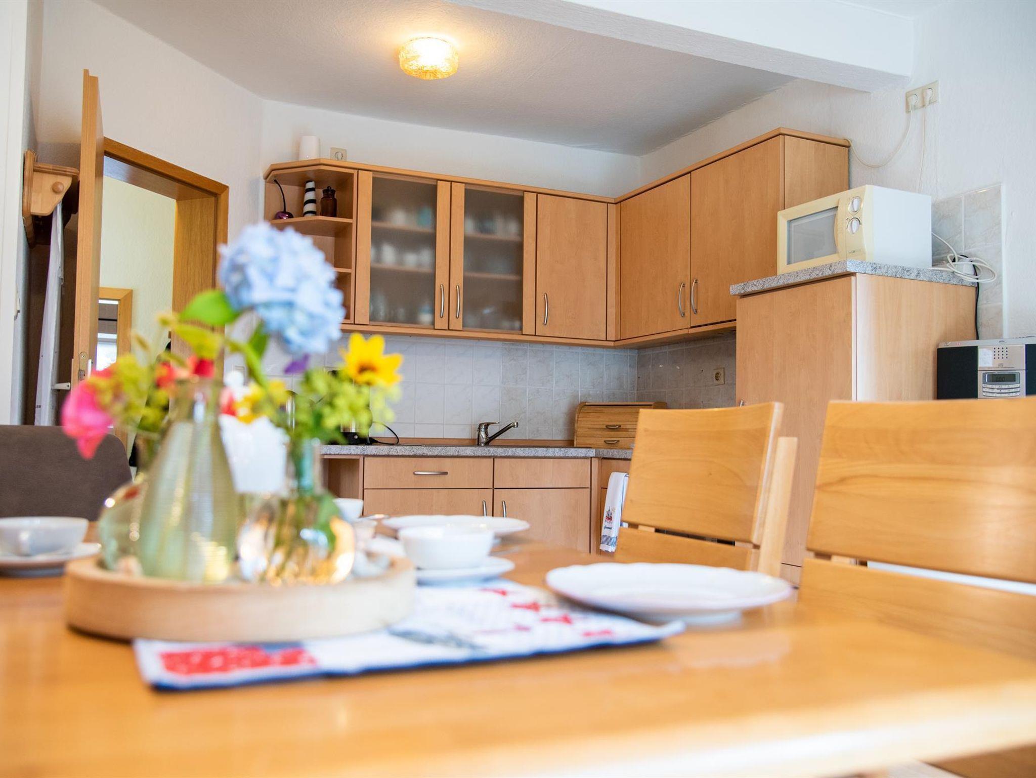 Geräumiges Ferienhaus in ruhiger Wohnlage für bis zu 8 Personen, 4 Schlafzimmer (zwei davon im Erdgeschoss mit Ehebett, zwei andere im Obergeschoss mit je zwei Einzelbetten), 2 Wohnzimmer, 1 Küchen, 2 x Du/WC, 1x Gäste WC, Sat-TV, 110 qm Wohnfläche, Garten, Terrasse, Parkplatz am Haus. Haustiere auf Anfrage - es wird eine extra Gebühr für Haustiere erhoben.