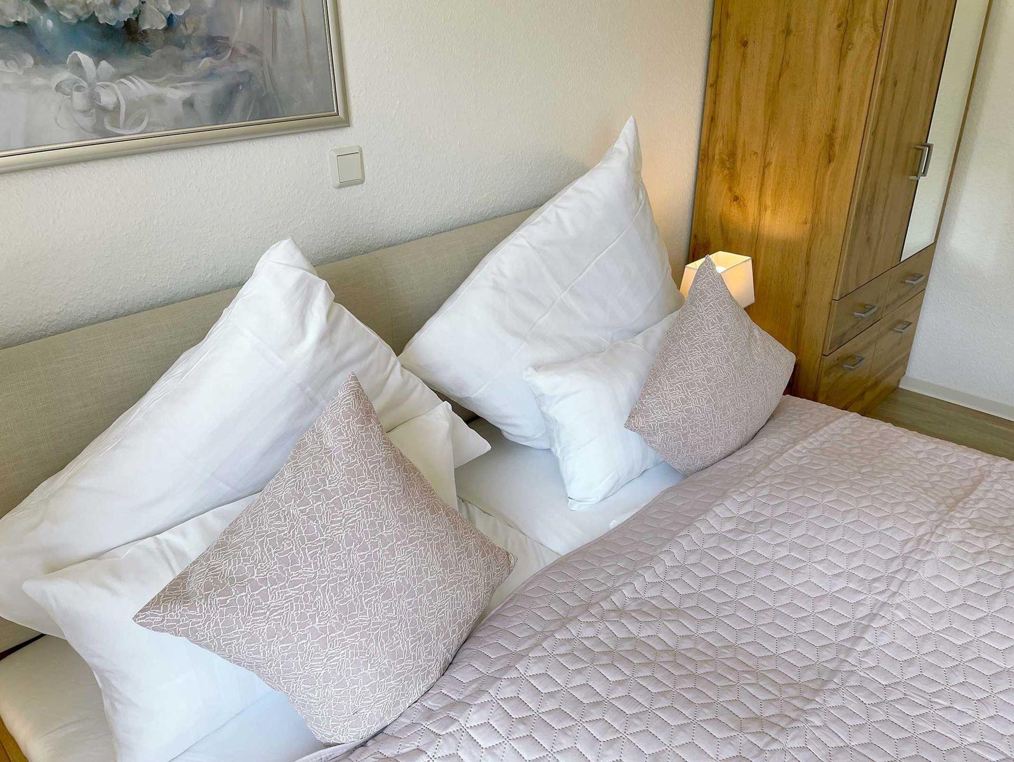 Komfortabel und hell ausgestattetes Doppelzimmer im Erdgeschoss mit eigener Terrasse. Große Fenster und Terrassenschiebetüren lassen viel Licht und Sonne in den Raum. Auf der eigenen Terrasse können Sie herrlich entspannen. Ein bequemes Doppelbett mit getrennten Matratzen bietet echten Schlafkomfort. Modernes Bad mit Dusche/WC. Information und Unterhaltung erhalten Sie auf dem großen Smart-TV und das kostenlose WLAN verbindet Sie mit der digitalen Welt. Frühstück inklusive. Kaffeemaschine, Wasserkocher und ein kleiner Kühlschrank stehen im Haus zur Verfügung.