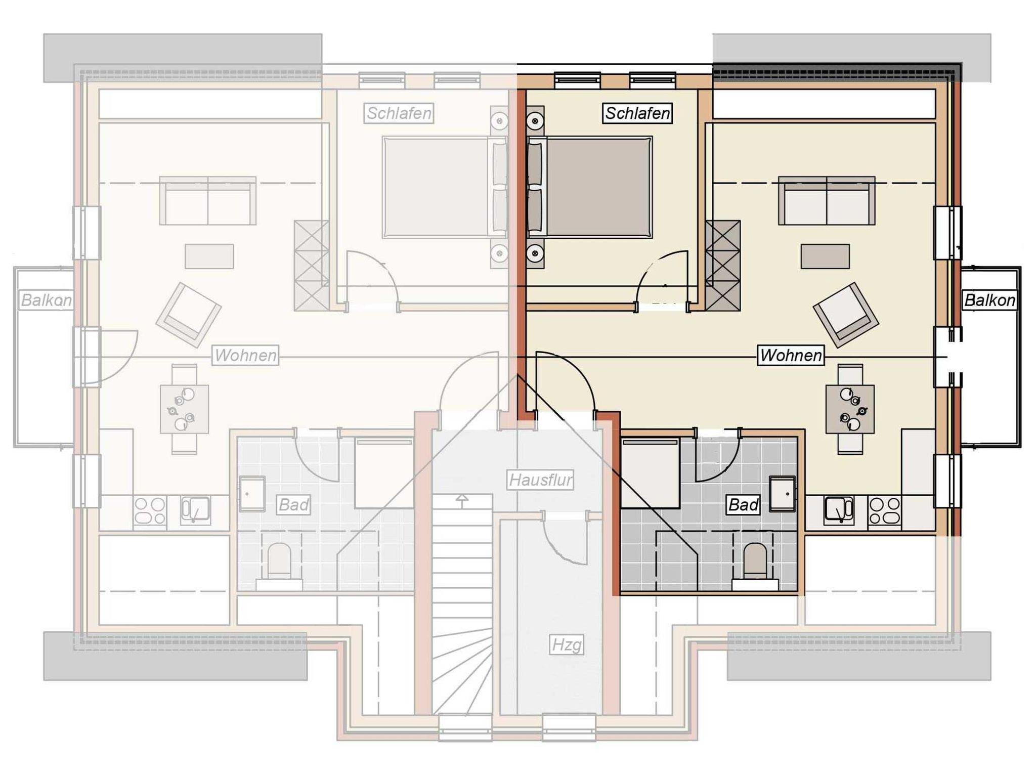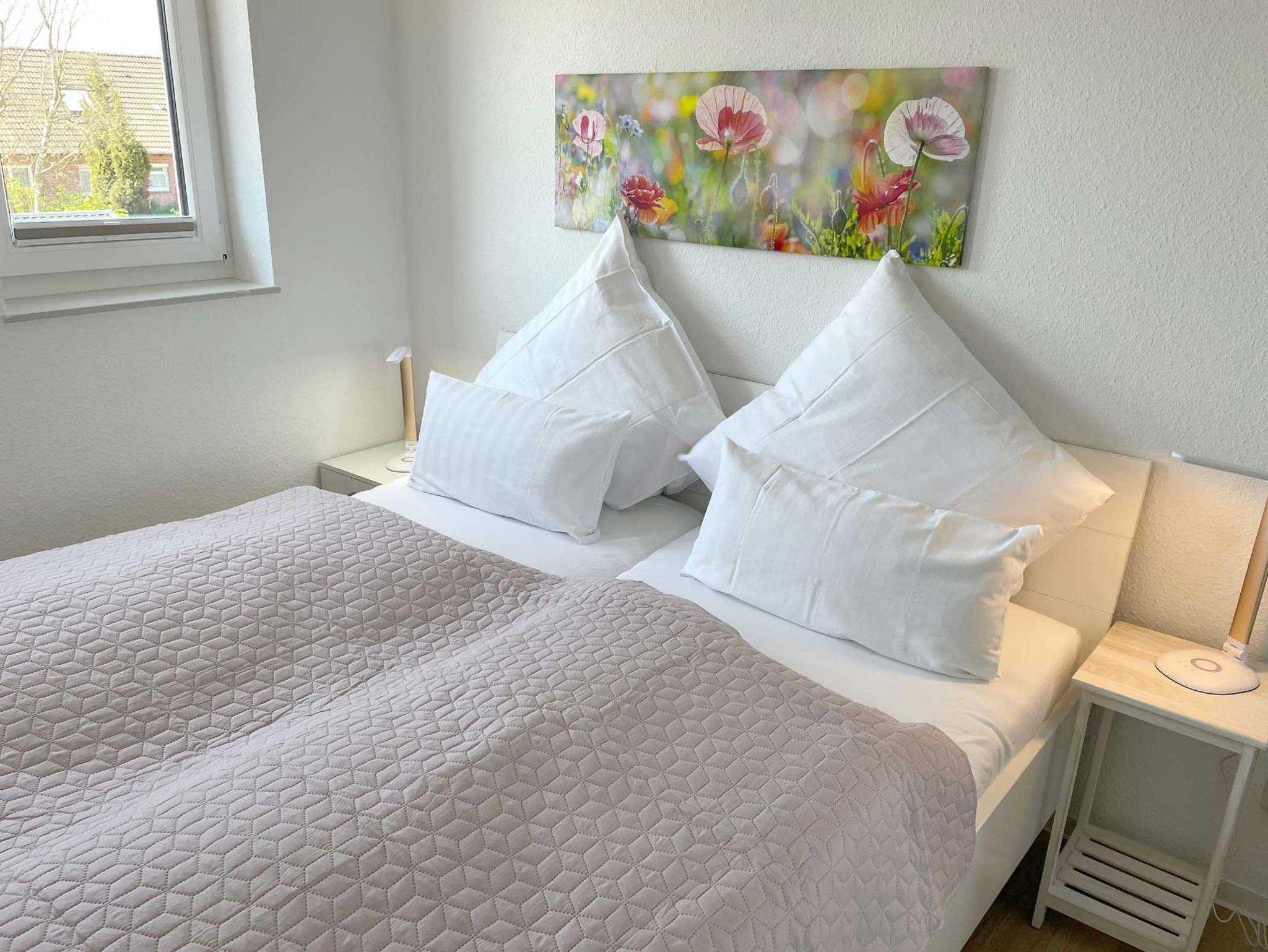 Unsere moderne Ferienwohnung mit Balkon im Obergeschoss bietet viel Platz für 2 Personen. Ein bequemes Doppelbett im separaten Schlafzimmer bietet echten Schlafkomfort. Im großen Sitzbereich können Sie herrlich entspannen. Mit der offenen Küchenzeile im Wohnbereich, inkl. Backofen und Spülmaschine, können Sie sich entspannt selbst versorgen. Information und Unterhaltung erhalten Sie auf dem großen Smart-TV und das kostenlose WLAN verbindet Sie mit der digitalen Welt. Modernes Bad mit Dusche/WC und Fenster. Frühstück inklusive.