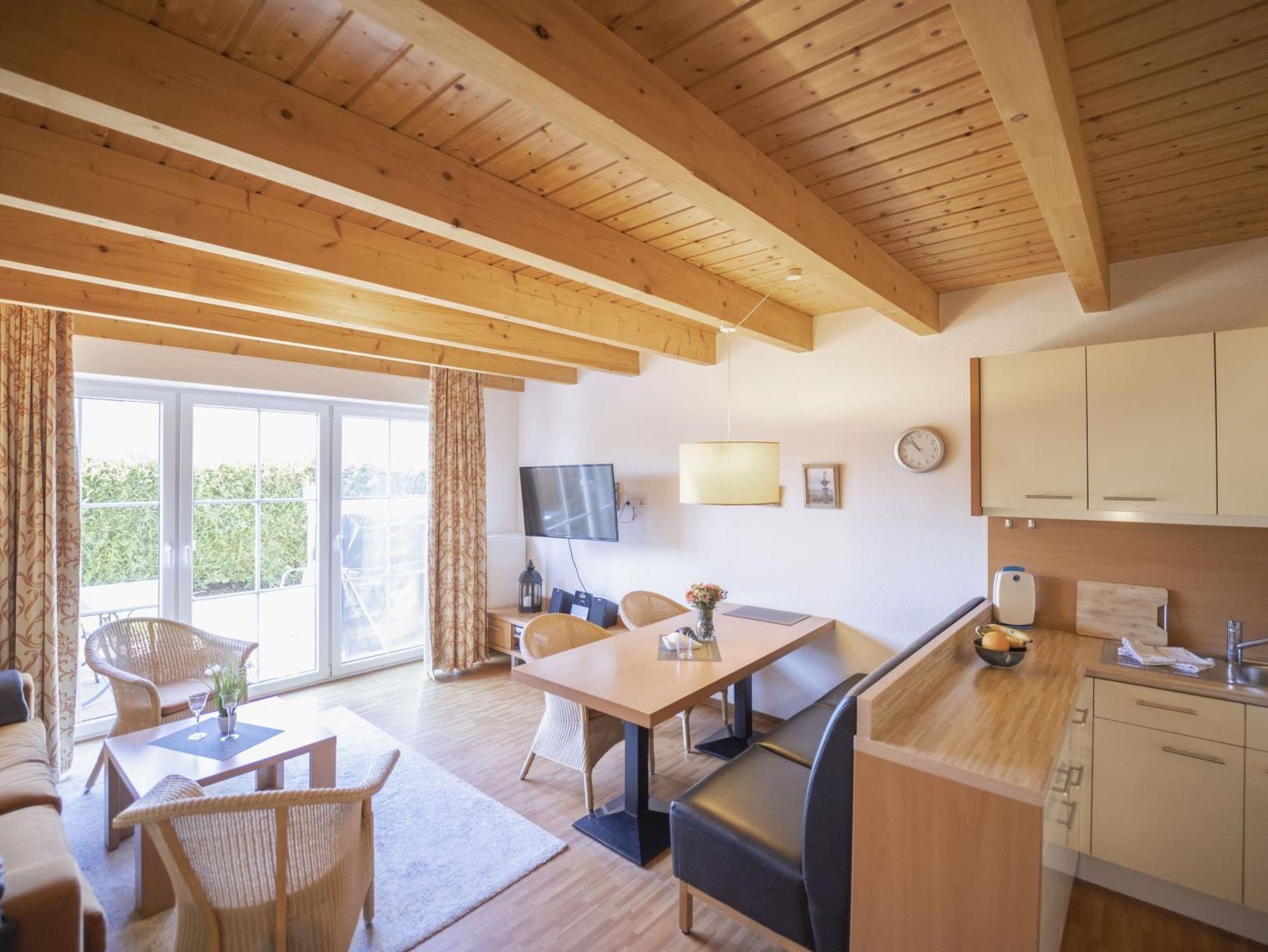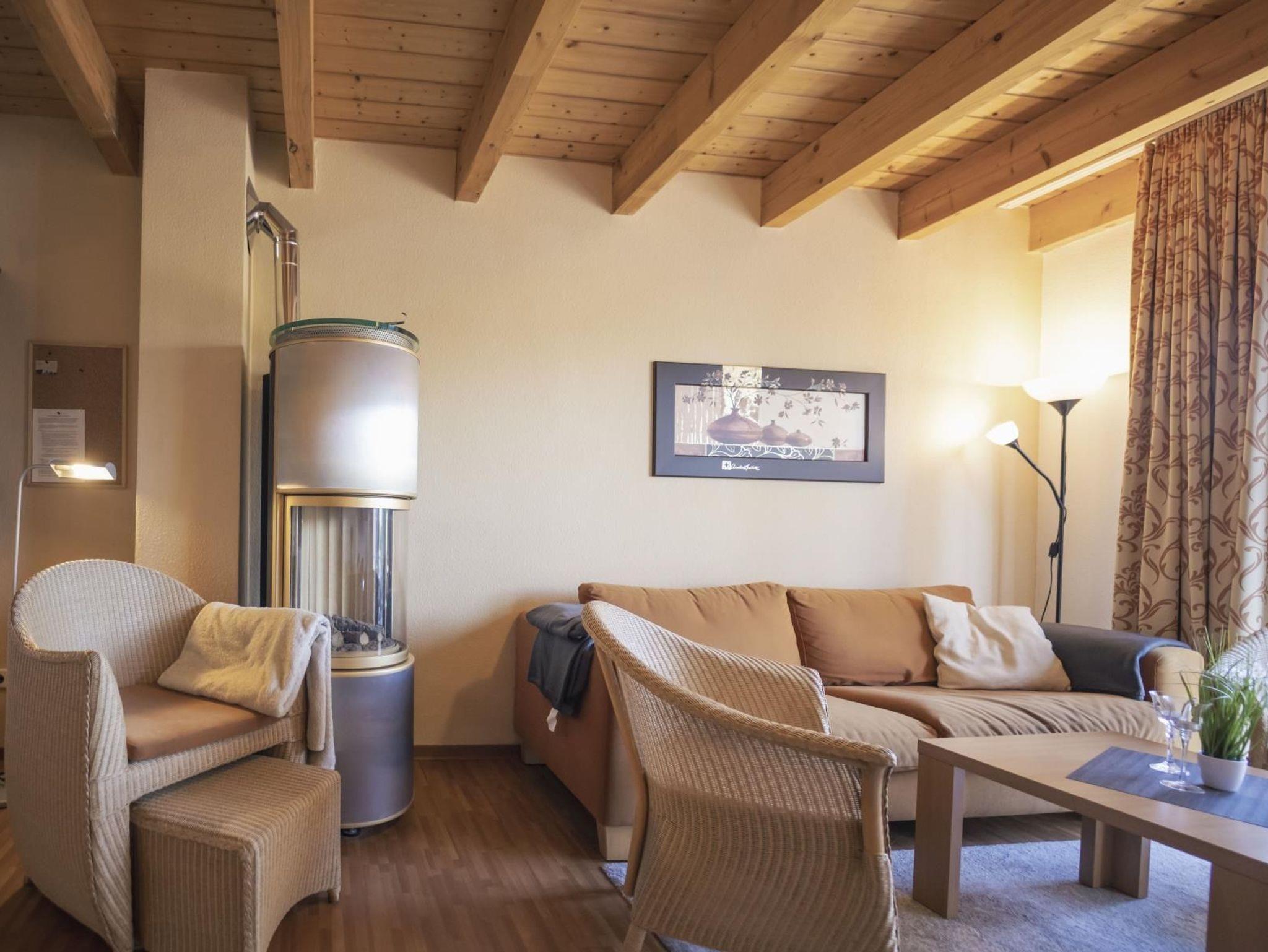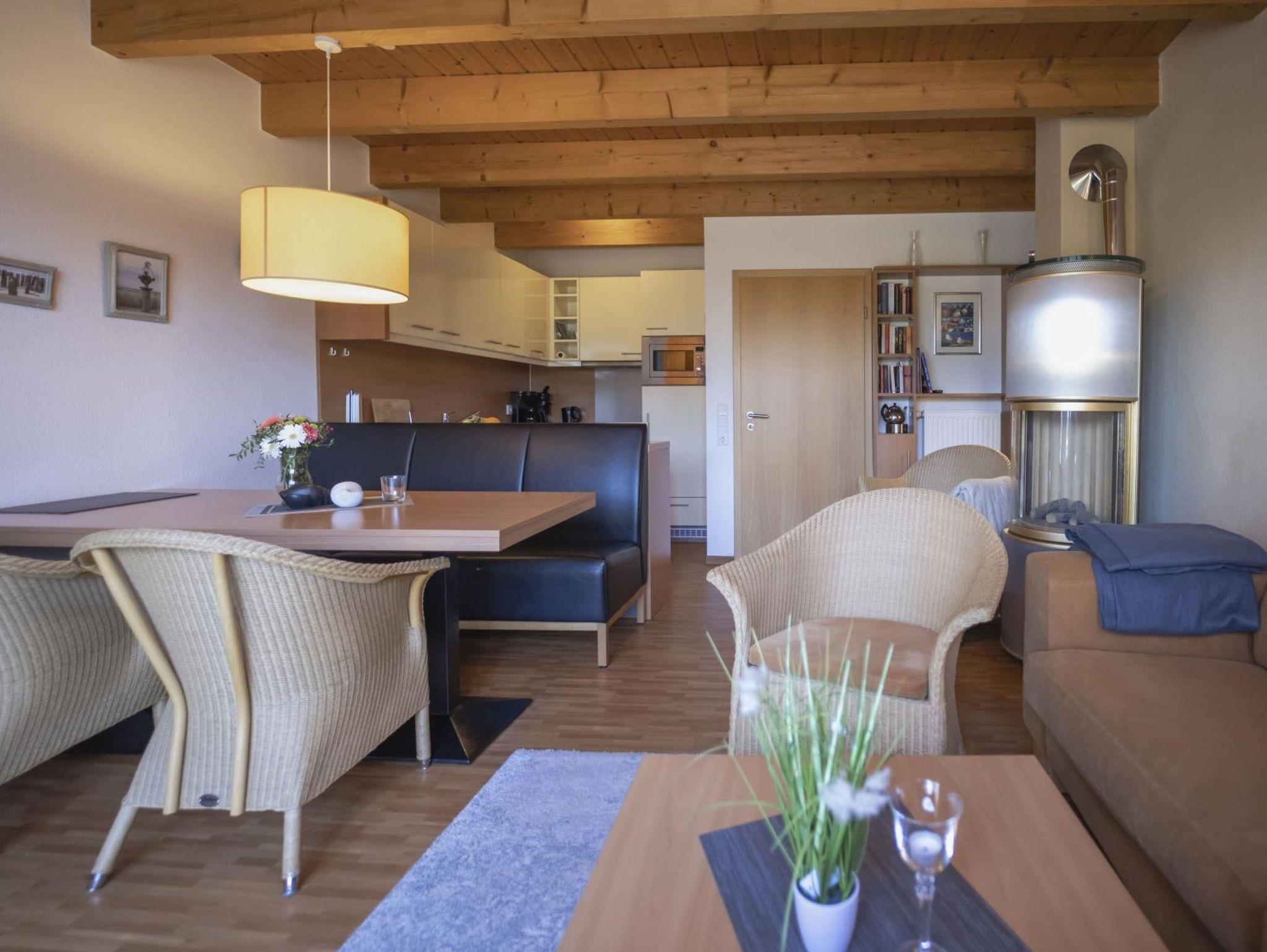 gemütliches Wohnzimmer mit einem Gas-Kaminofen (Sie regulieren die Flamme per Fernbedienung), hinter dem Sie am Abend gar nicht mehr hervorkommen möchten. Sofa, bequeme Korb-Sessel und kuschelige Beleuchtung machen eine stimmungsvolle und erholsame Ferienatmosphäre. Ein großer Plasma-Farbfernseher (Satellit), DVD-Player und eine Musikanlage vervollständigen die Urlaubsqualität. Eine kleine ausgesuchte Bibliothek (einschl. Leselampe) für Jung und Alt und verschiedene Spiele für ein fröhliches Miteinander stehen für Sie zur Verfügung.