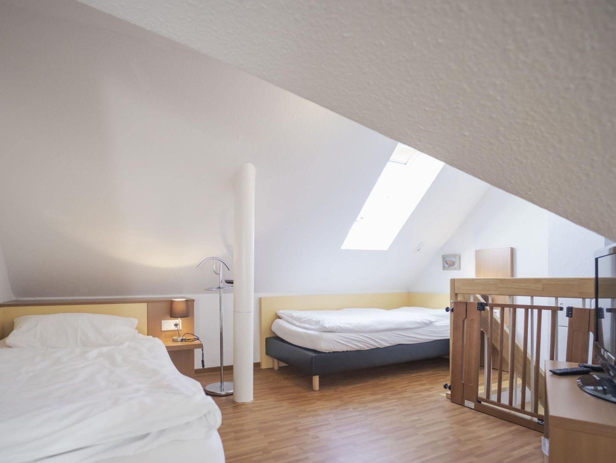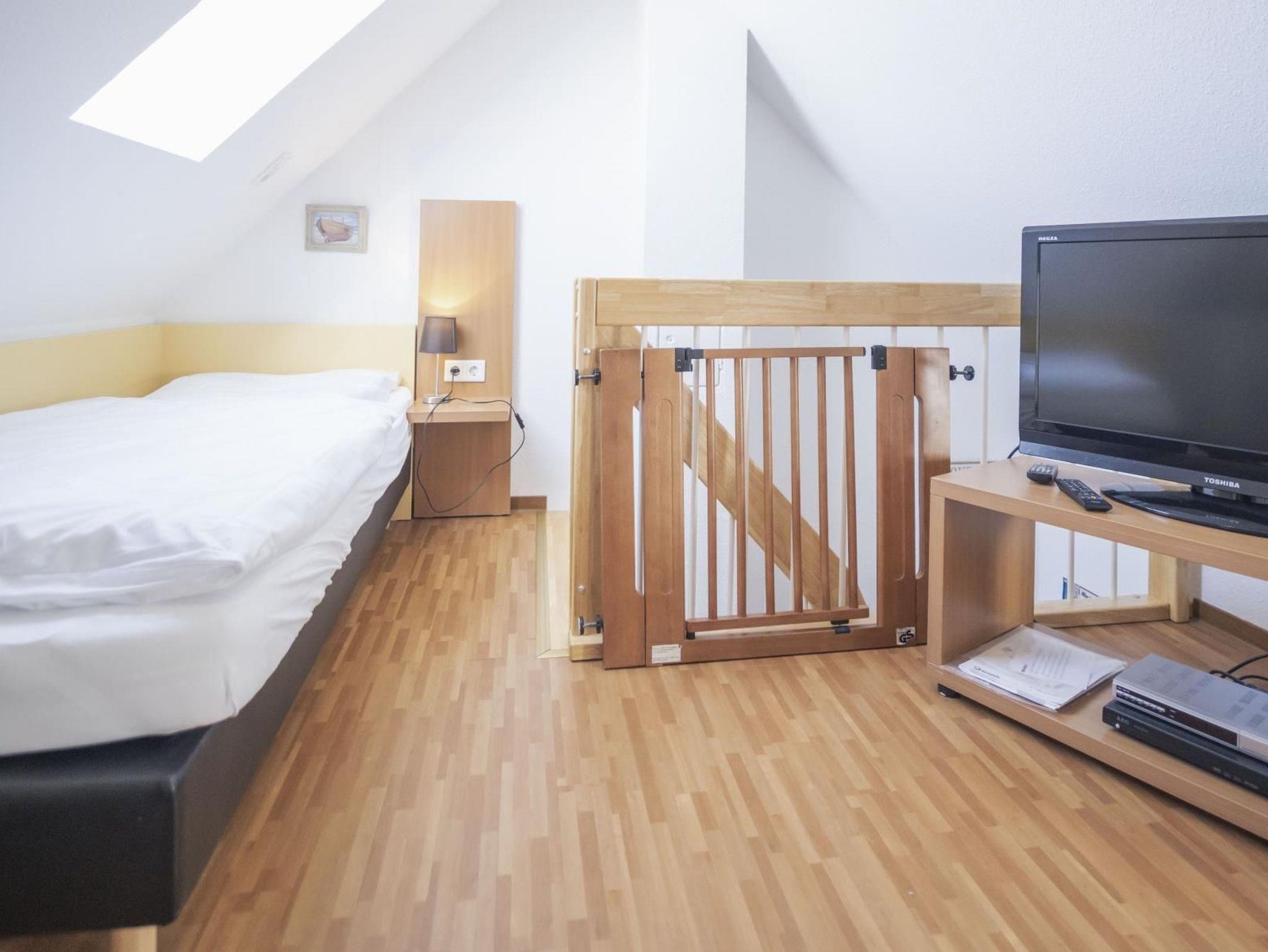 Im Dachgeschoss finden sie ein weiteres Schlafzimmer mit zwei Einzelbetten und Flachbild-Fernseher mit DVD-Player sowie eine Spielecke für die Kleinen (oder die Großen, die Ruhe zum Meditieren brauchen).