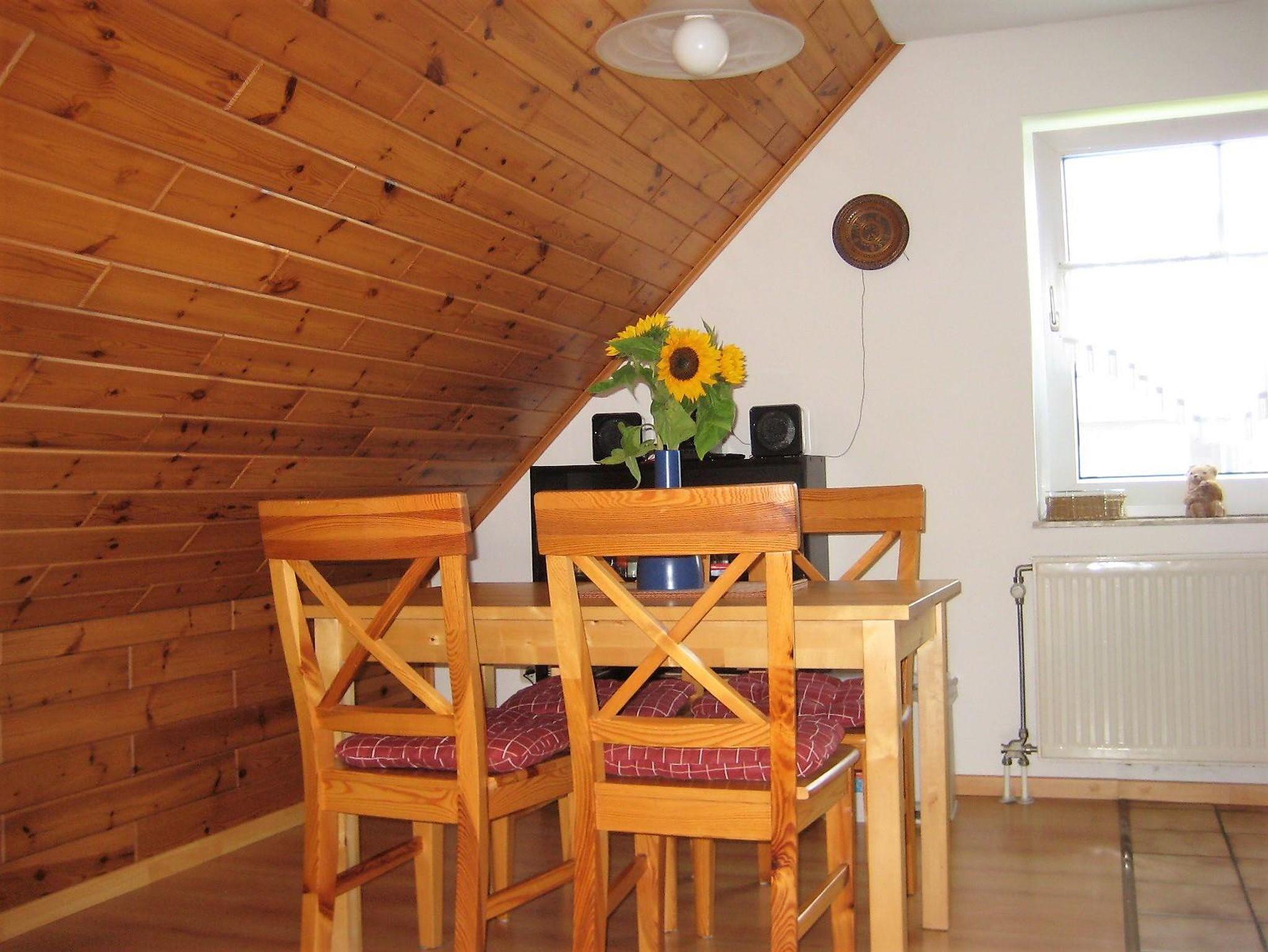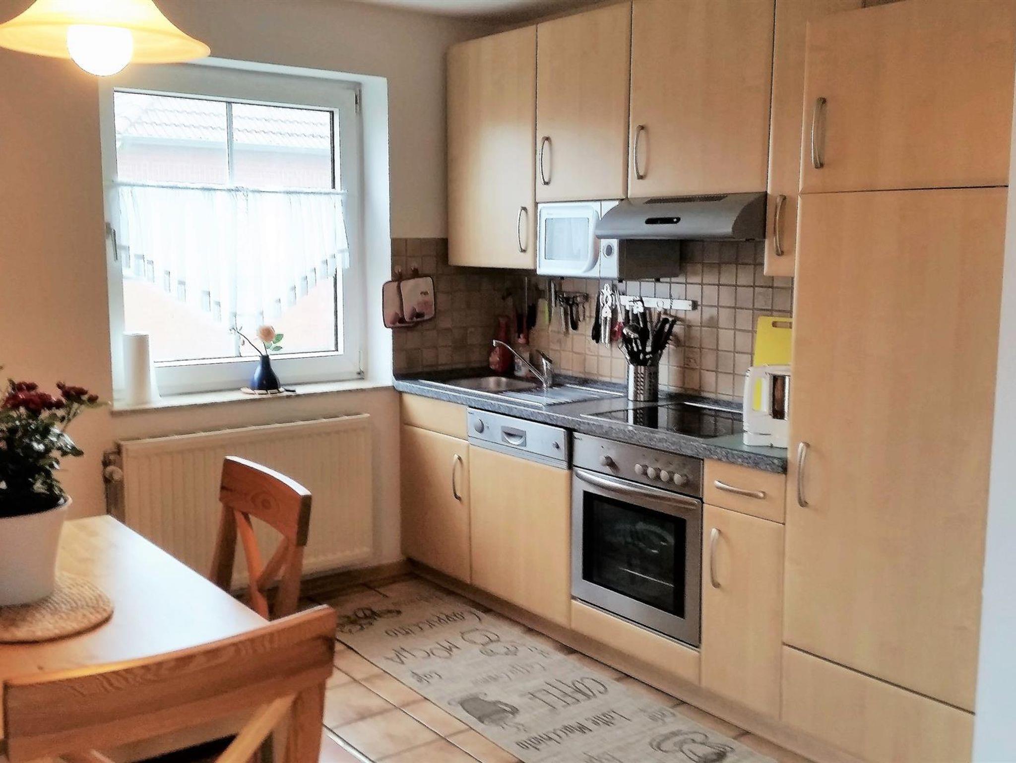 Beide Wohnungen verfügen über einen großzügigen Wohnraum mit Ledersitzgarnitur und Kaminofen (nur als Notfallheizung nutzbar). Die moderne Küchenzeile (Spülmaschine, Mikrowelle, Kühl-Gefrierkombination etc.) ist ebenso wie die Essecke für 4 Personen in den Wohnraum integriert. 2 Schlafzimmer, Kinderreisebett u. Kinderhochstuhl, Du /WC, Terrasse oder Balkon und Garten mit Gartenmöbeln, Grill, Sat-TV, Stereoanlage/Radio und UntKerstellmöglichkeit für Fahrräder runden das Angebot ab. Zu jeder Wohnung gehört ein Parkplatz. Bettwäsche auf Anfrage.