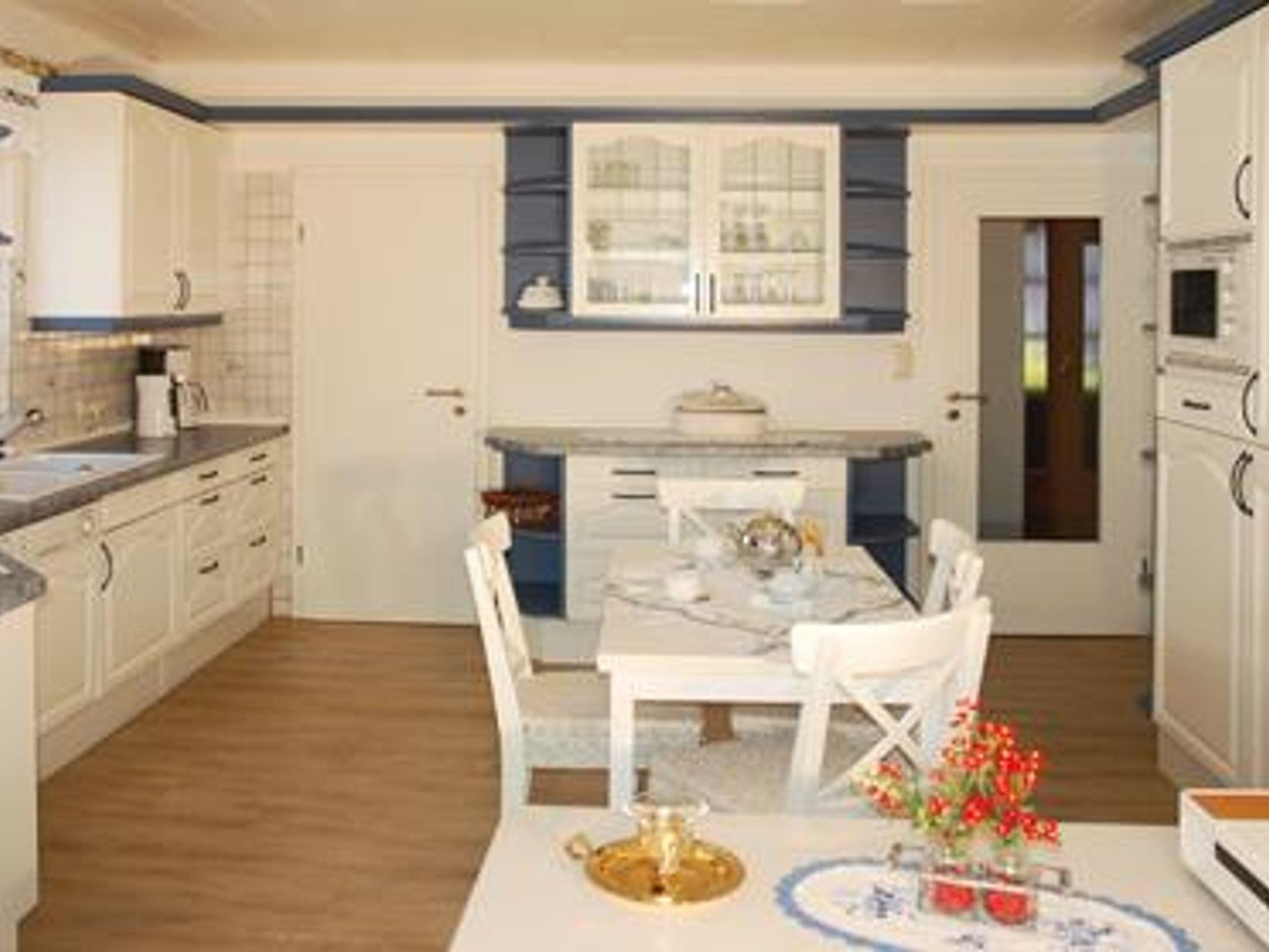 Diese Ferienwohnung im Erdgeschoss, in der Nähe der Zwillingsmühlen gelegen, wurde im Frühjahr 2013 aufwendig renoviert und ist mit ca. 70 m² und 2 Schlafzimmern für 4 Personen geeignet. Durch den eigenen Eingang betreten Sie das geräumige gemütliche Wohnzimmer mit Kaminofen. Direkt angrenzend befindet sich die große Küche in ostfriesischen blau-weißen Tönen mit Geschirrspüler und Mikrowellenherd. Die 2 Schlafzimmer mit Fernseher sind jeweils mit einem Doppelbett ausgestattet. Das Badezimmer verfügt über eine Dusche und WC. Zur Ausstattung gehören SAT-TV, CD-Player, Telefon und Internetzugang. Eine große Westterrasse am Eingang und eine überdachte Südterrasse mit Garten runden diese Wohnung ab.
