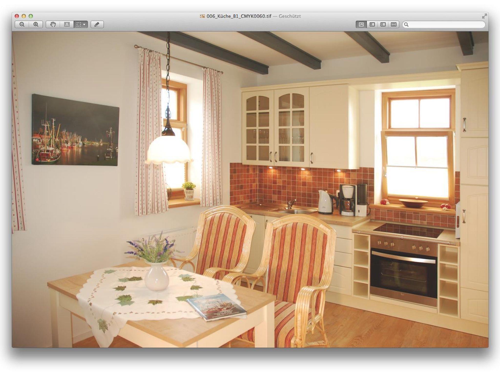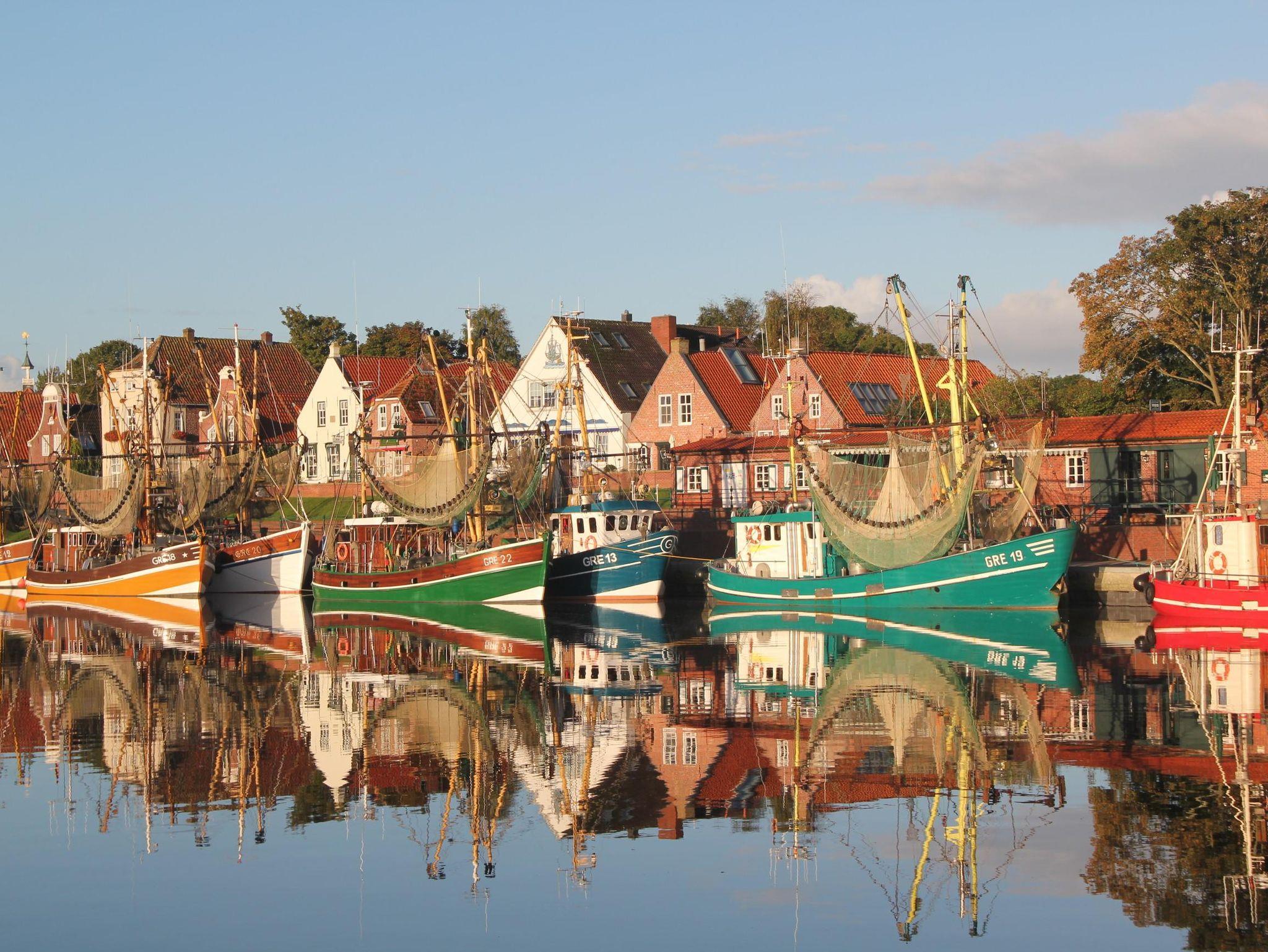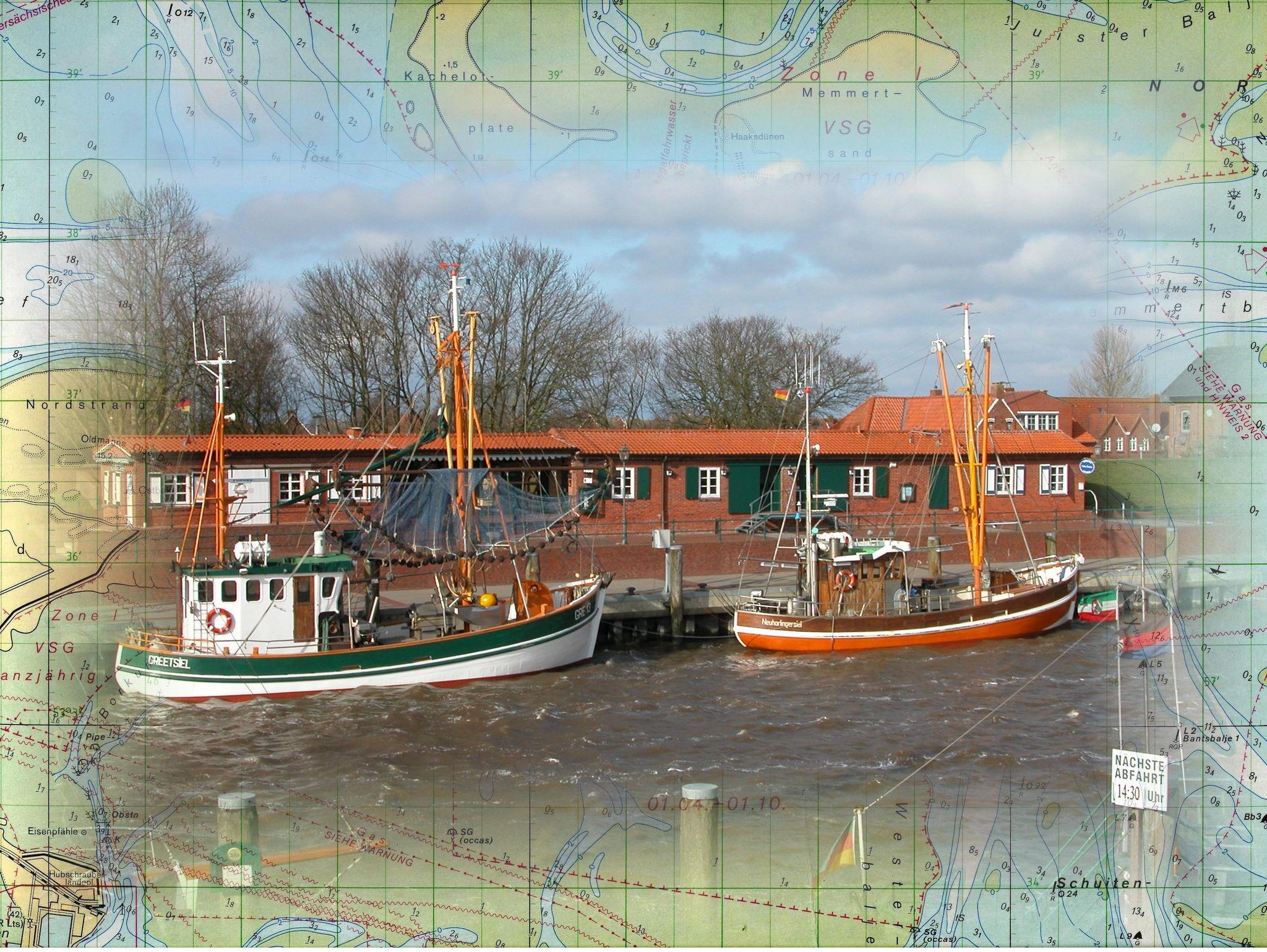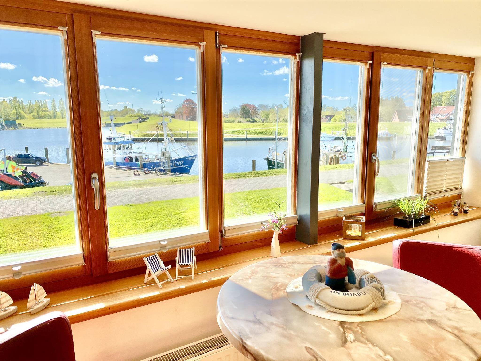 Wohnung 1 hat eine Wohnfläche von 60 m² und besteht aus einer Wohnküche mit einer Einbauküche, einem Schlafzimmer mit TV, einem Badezimmer und einem Wohnzimmer mit einer zusätzlichen Schlafgelegenheit. Aus dem Wohnzimmer heraus haben Sie einen wunderschönen Blick auf den Yachthafen mit den vielen Segelbooten und auf den malerischen Fischereihafen mit der größten Krabbenkutterflotte an der norddeutschen Küste.