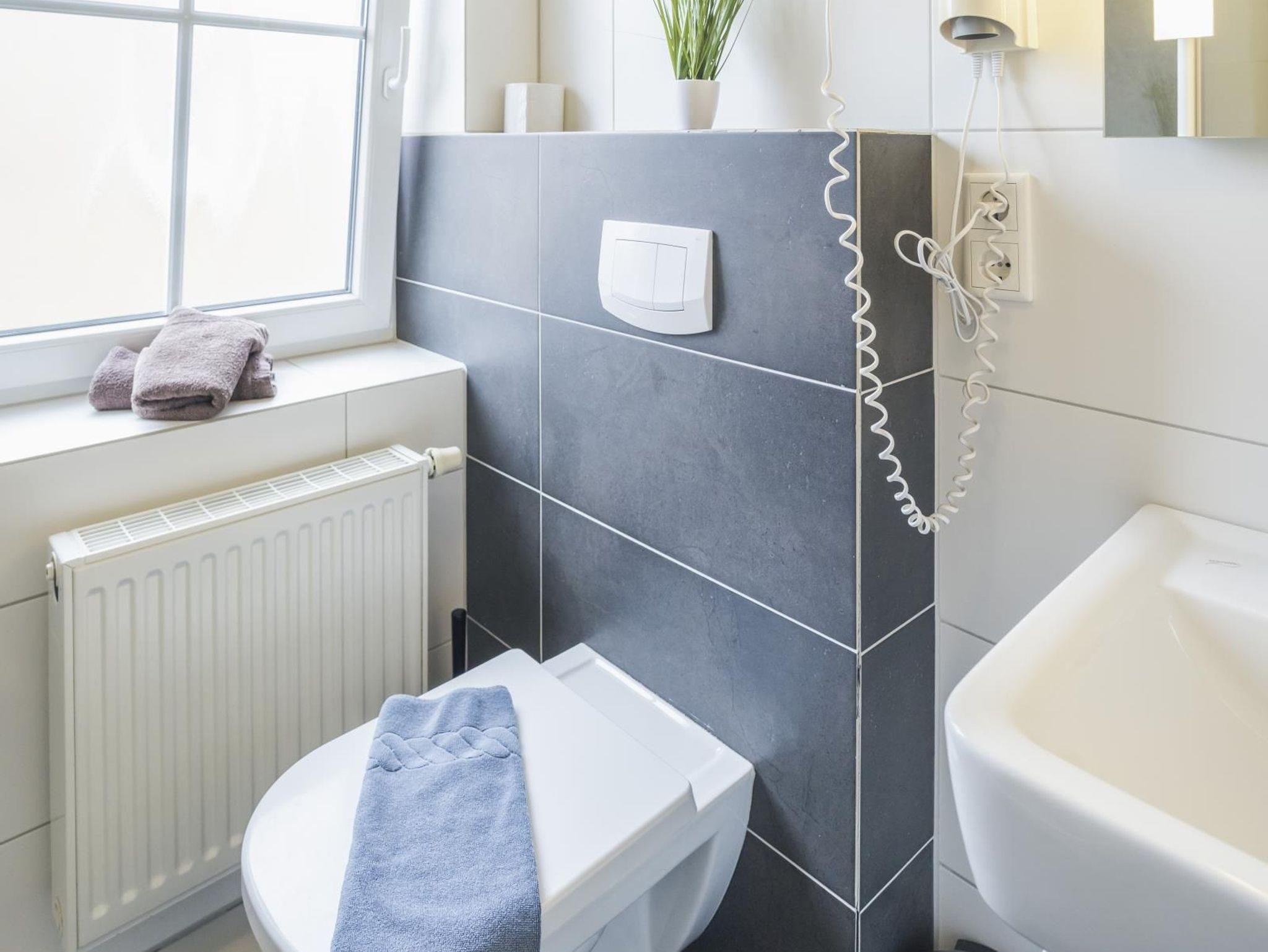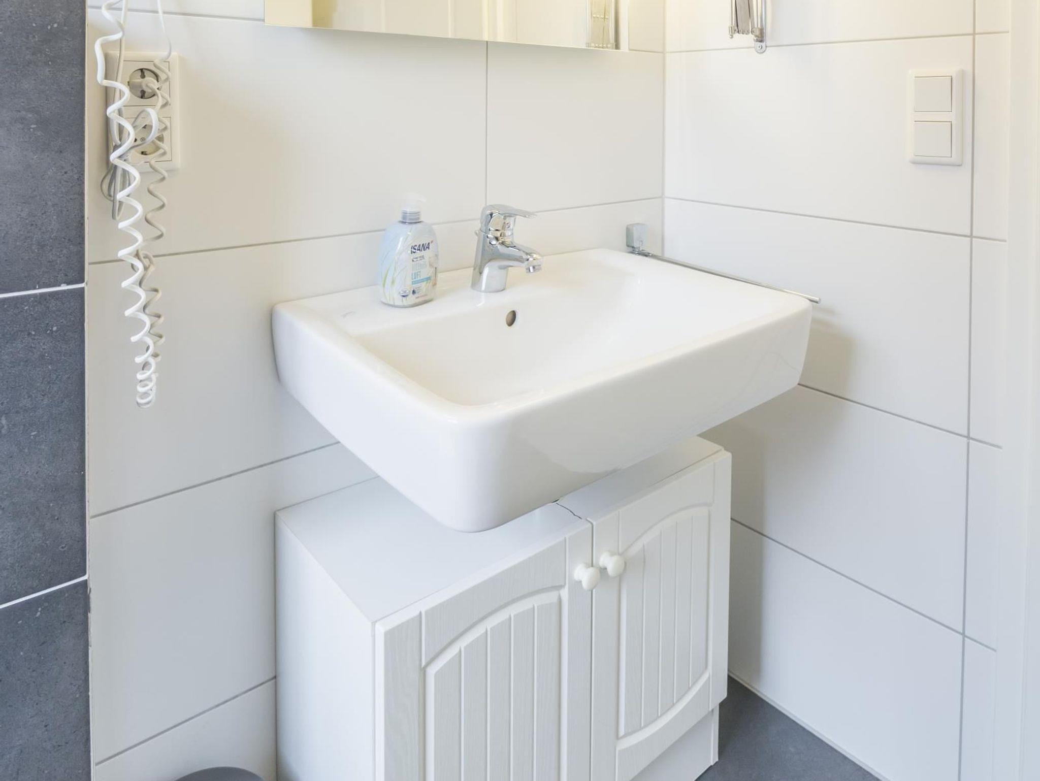 Das Haus verfügt im EG wie auch im OG über sehr exklusiv gestaltete Duschbäder mit flacher Duschwanne, im Obergeschoss zusätzlich mit Föhn und Kosmetikspiegel.