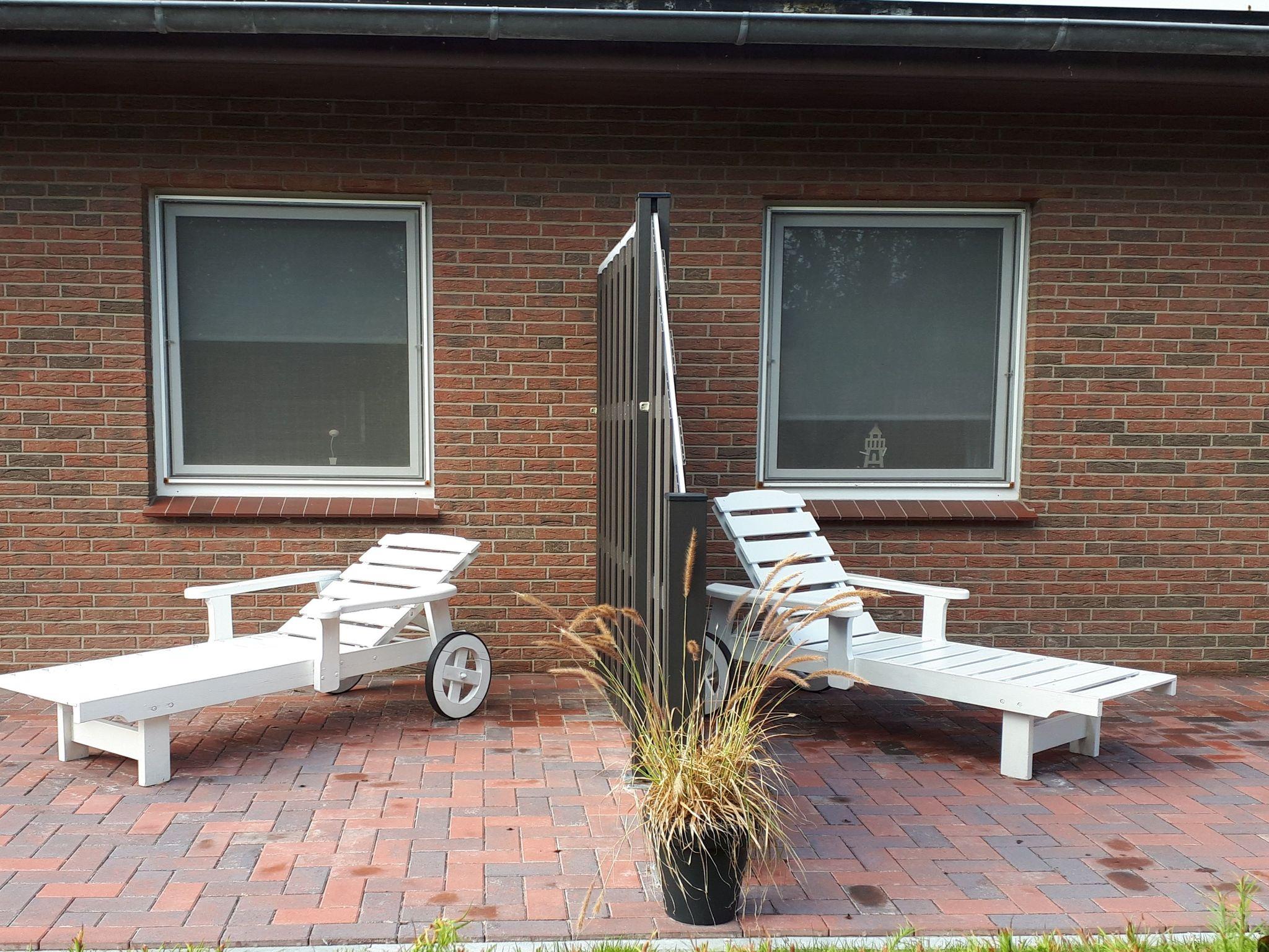 Die Terrasse (ca. 20qm) im Grünen lädt zum Entspannen, Abschalten und Wohlfühlen ein.