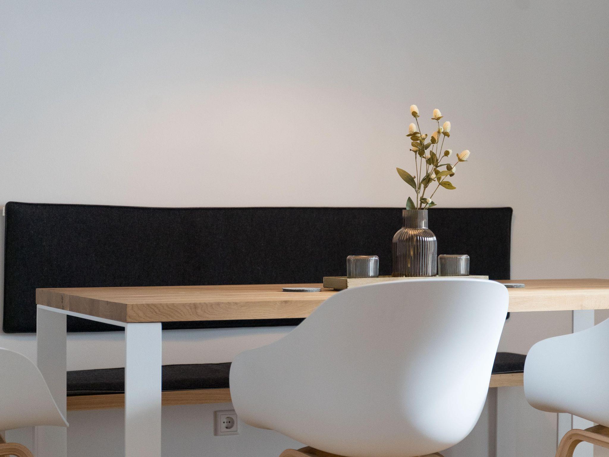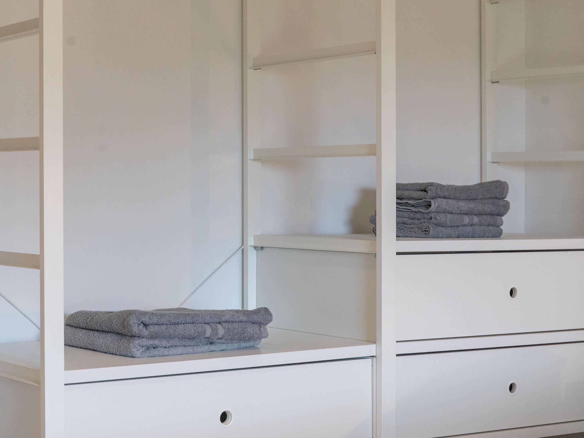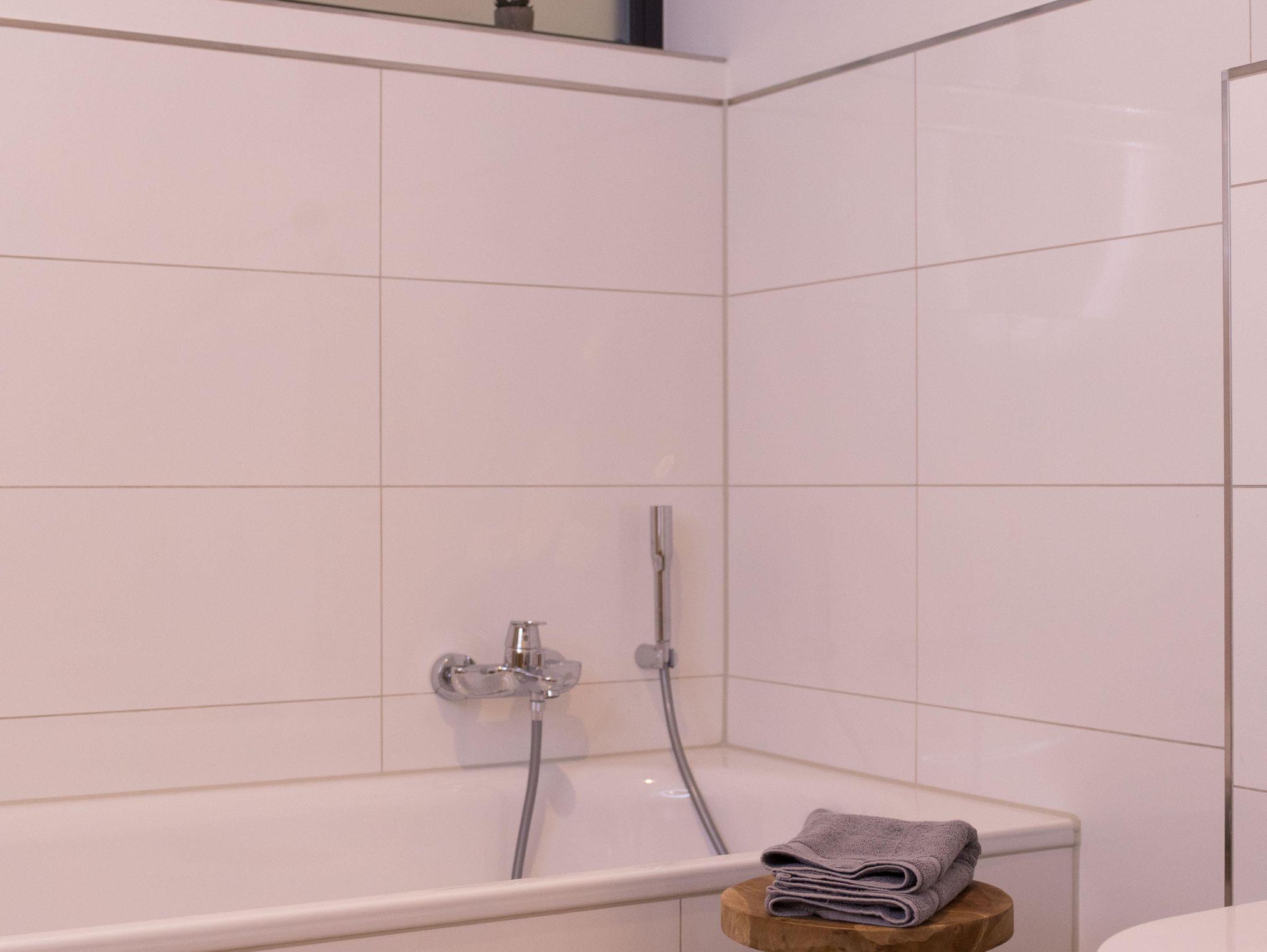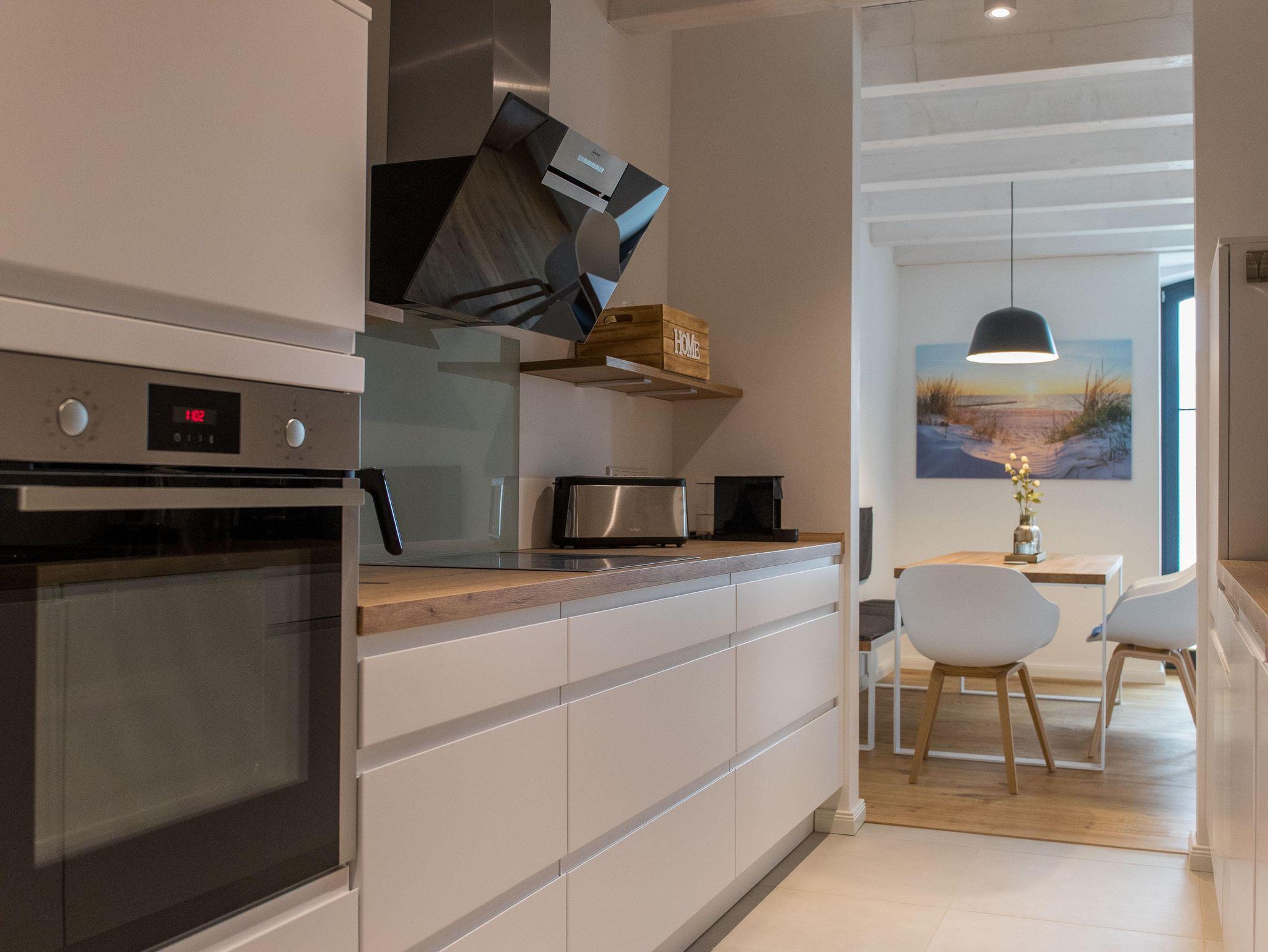 Die Wohnung verfügt über eine gut ausgestattete Küche im Eingangsbereich. Hier stehen Ihnen alle wesentlichen Küchenutensilien zur Verfügung, von der Induktionsherdplatte über eine moderne Espressomaschine bis hin zu einer Heißluftfritteuse.