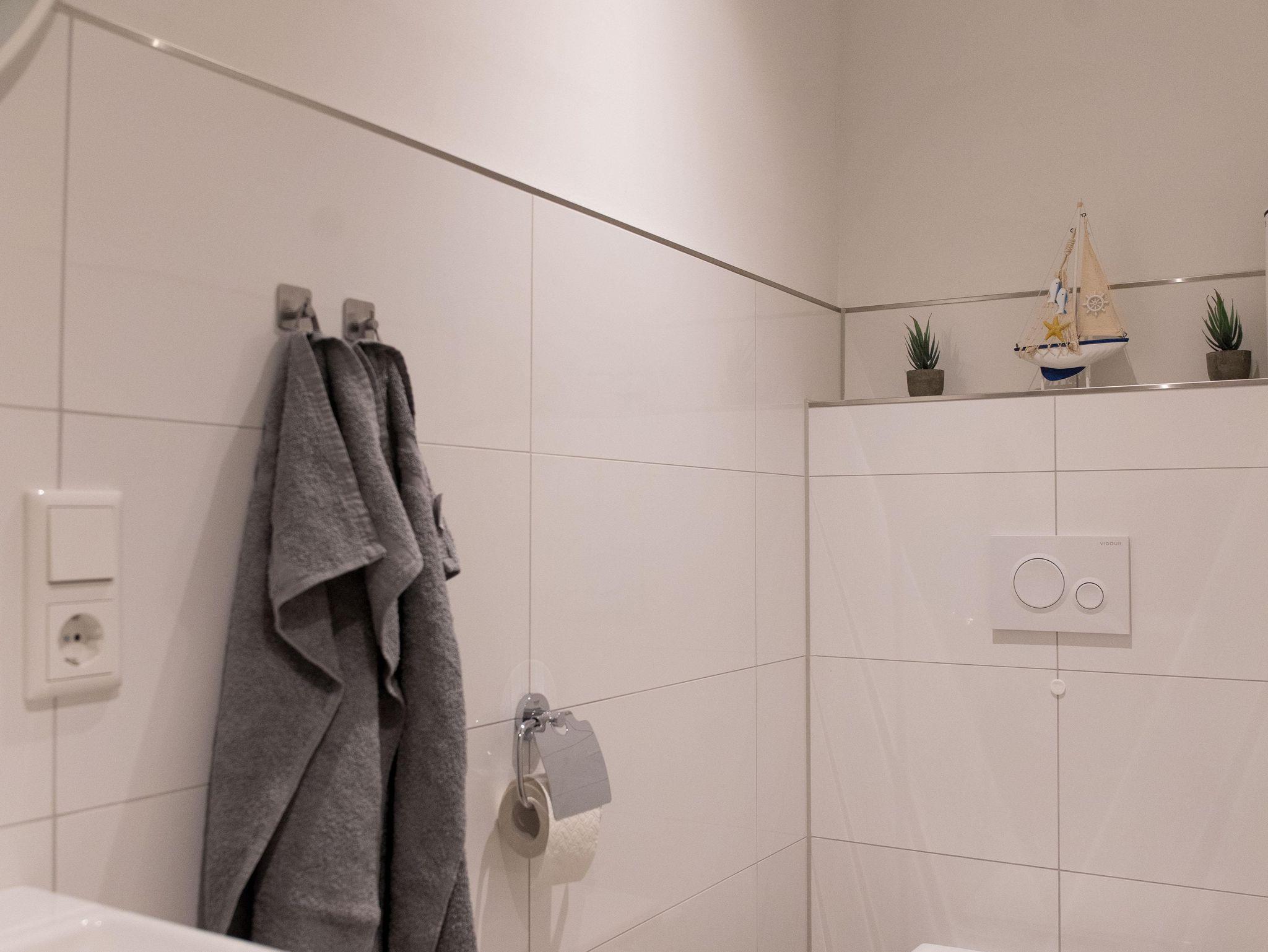 Von der Küche gelangt man in das großzügige Wohn- und Esszimmer. Genießen Sie gemeinsame Mahlzeiten im Essbereich oder entspannen Sie einfach auf dem bequemen Sofa im Wohnzimmer, während Sie den 50 Zoll großen QLED-Fernseher nutzen. Für die kleinen Gäste steht ein Kinderhochstuhl zur Verfügung. Für zusätzlichen Komfort sorgt die Fußbodenheizung, die für eine wohlige Atmosphäre selbst an kühlen Tagen sorgt. Zudem sind im Erdgeschoss ein Gäste-WC und ein Abstellraum vorhanden.