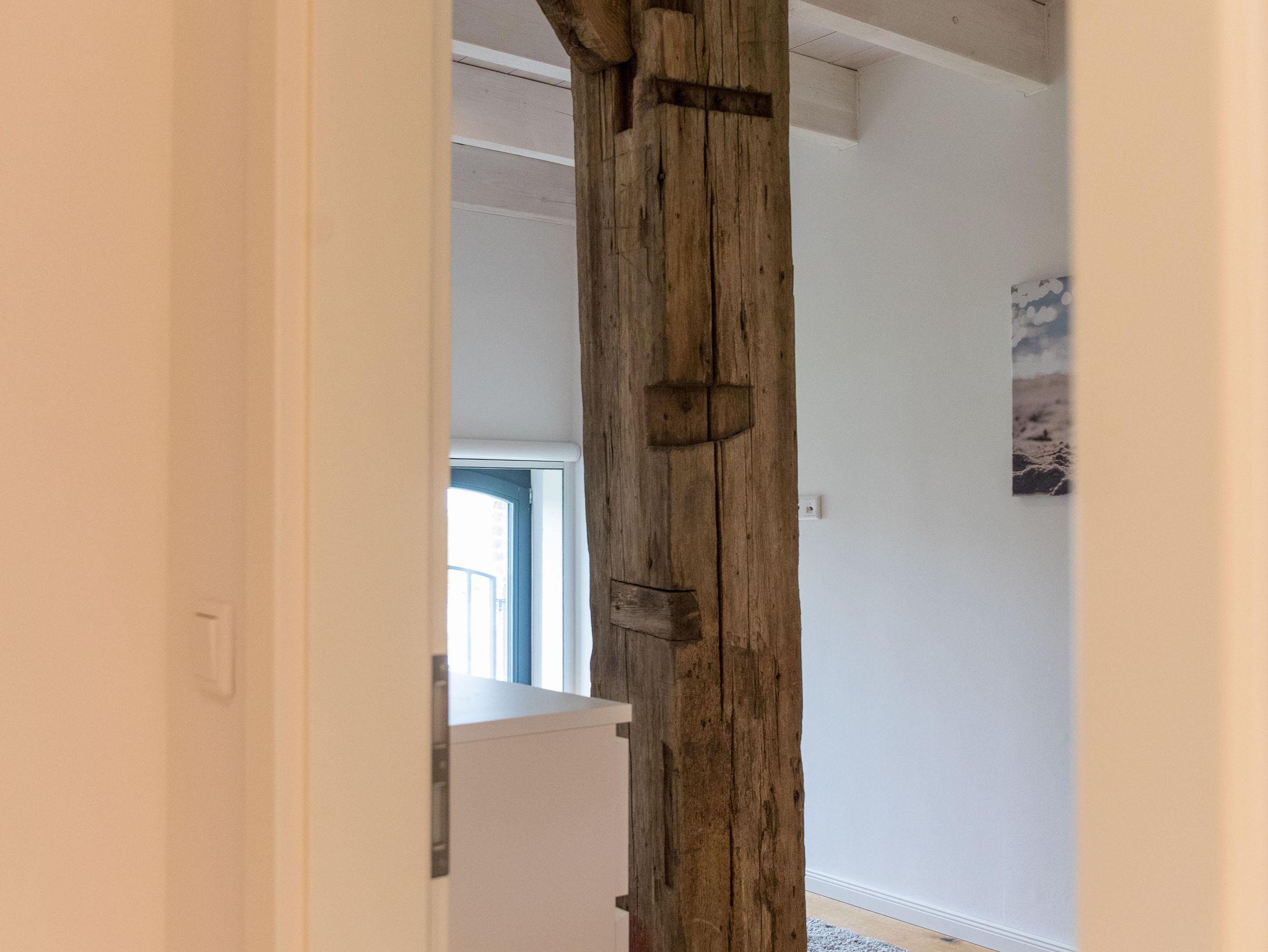 Alle Wohnungen sind Maisonette und zeichnen sich durch moderne, Grundrisse aus. Durch die Einbeziehung des historischen Ständerfachwerks in die Wohnraumgestaltung erhalten die Einheiten zudem eine besondere, unverwechselbare Note. Fußbodenheizung, Echtholz-Parkettböden sowie Armaturen und Keramik namhafter Hersteller versprechen einen hohen Wohnkomfort. Zu jeder Wohnung gehört eine großzügige Terrasse sowie ein PKW-Stellplatz mit Abstellschuppen. Die Außenanlagen des rund 4000 qm großen Grundstücks zeichnen sich besonders an der Südseite und Ostseite durch großzügige Grünflächen aus, die mit Sträuchern und Hecken geschmackvoll angelegt wurden. Ein alter Baumbestand rundet das Gesamtbild ab.