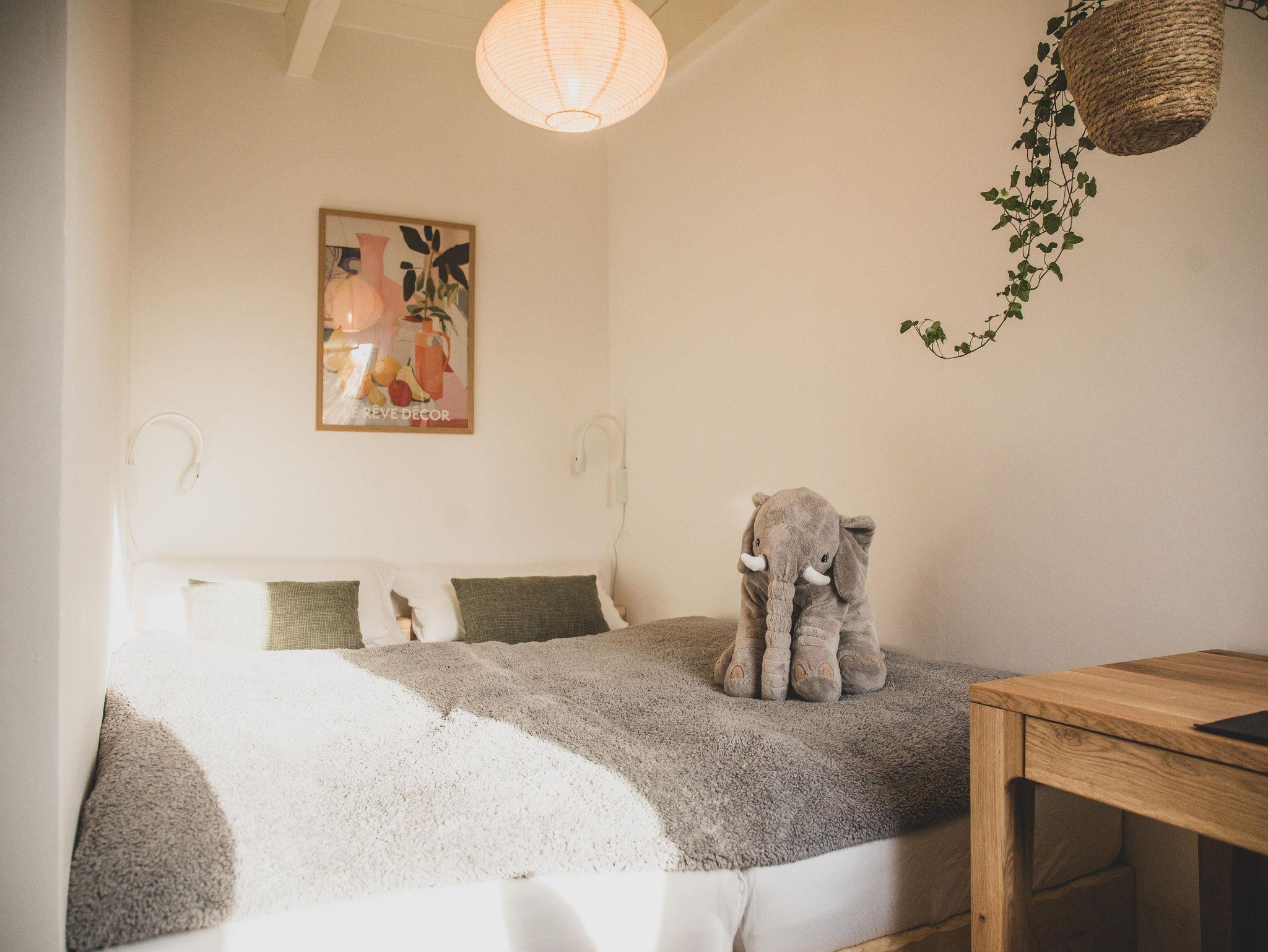 Das erste Schlafzimmer begeistert mit einem echten Highlight: dem riesigen Familienbett (2,70 m breit) – perfekt, um gemeinsam zu kuscheln, zu lesen oder einfach auszuschlafen.