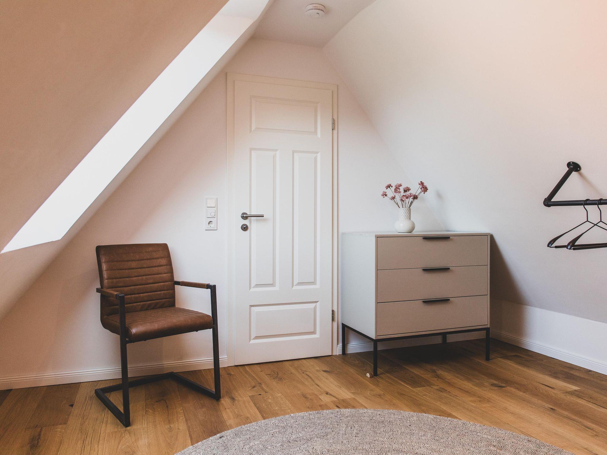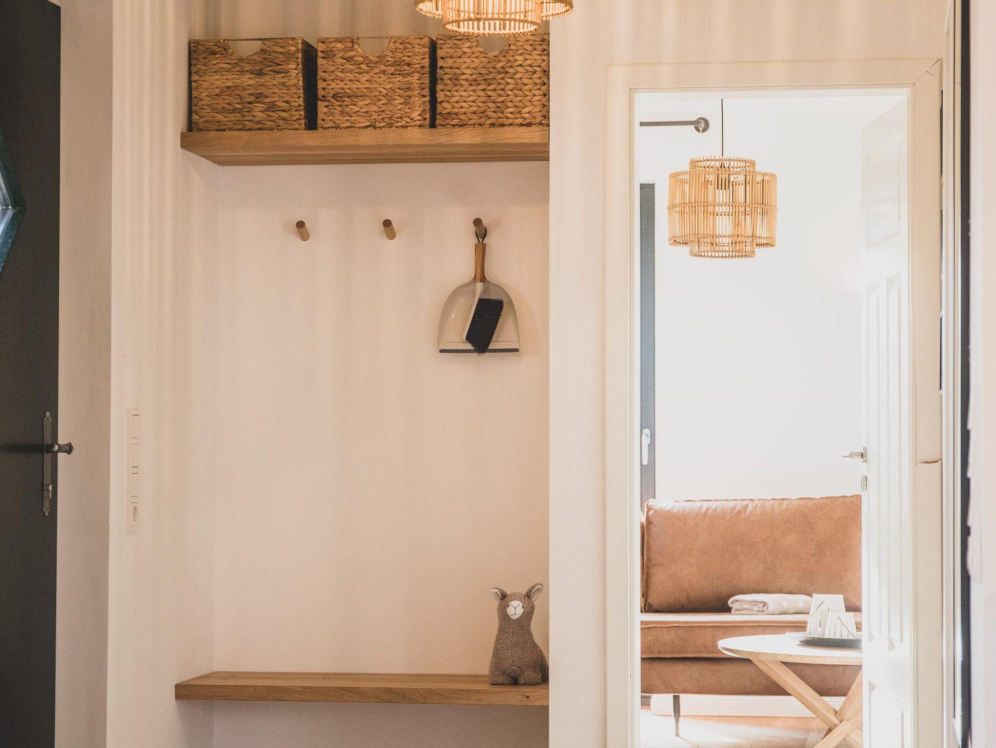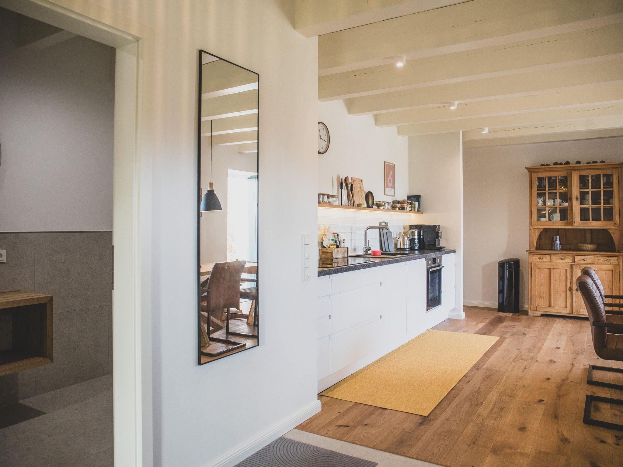 Die Ferienwohnung erstreckt sich über zwei Ebenen und verfügt über einen separaten Eingang, der nicht über die große Eingangshalle des Gulfhofs führt. So genießt ihr zusätzliche Privatsphäre und könnt direkt in euer eigenes Urlaubsreich eintreten.