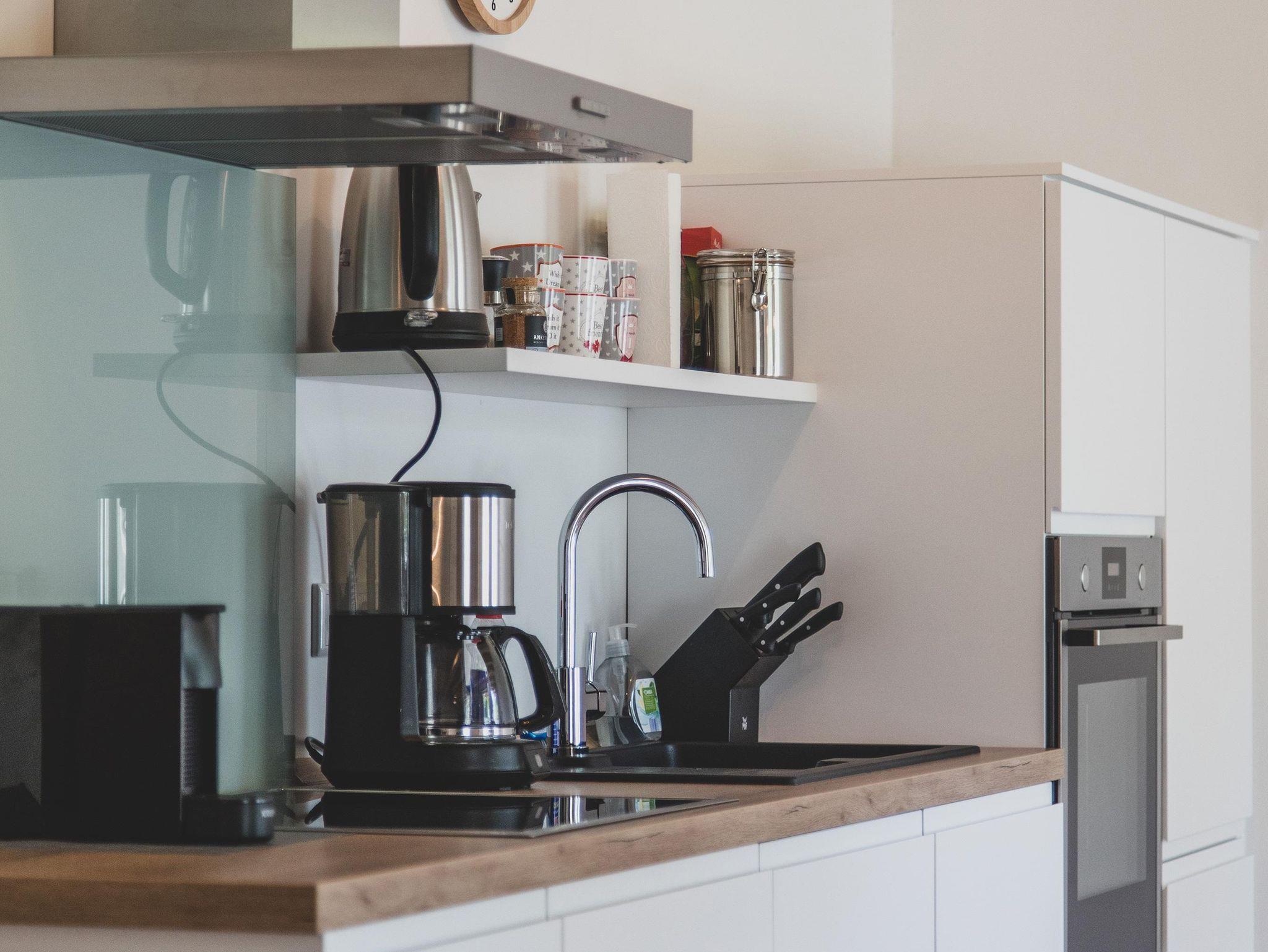Die vollausgestattete Küche lässt mit hochwertigem Geschirr, Mikrowelle und Nespressomaschine keine Wünsche offen. Im großzügigen Eingangsbereich befindet sich ebenfalls ein Bad mit Dusche.