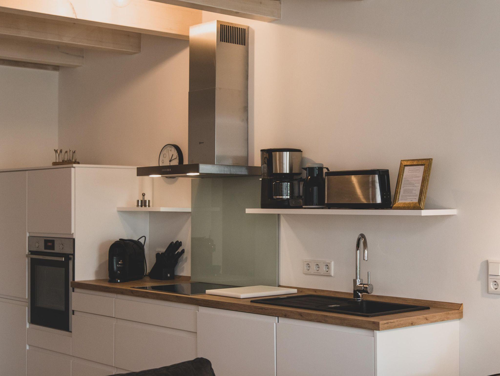 Die vollausgestattete Küche lässt mit hochwertigem Geschirr, Geschirrspülmaschine, Mikrowelle, Kaffeemaschine, Caffissimo-Capselmaschine, Toaster keine Wünsche offen.