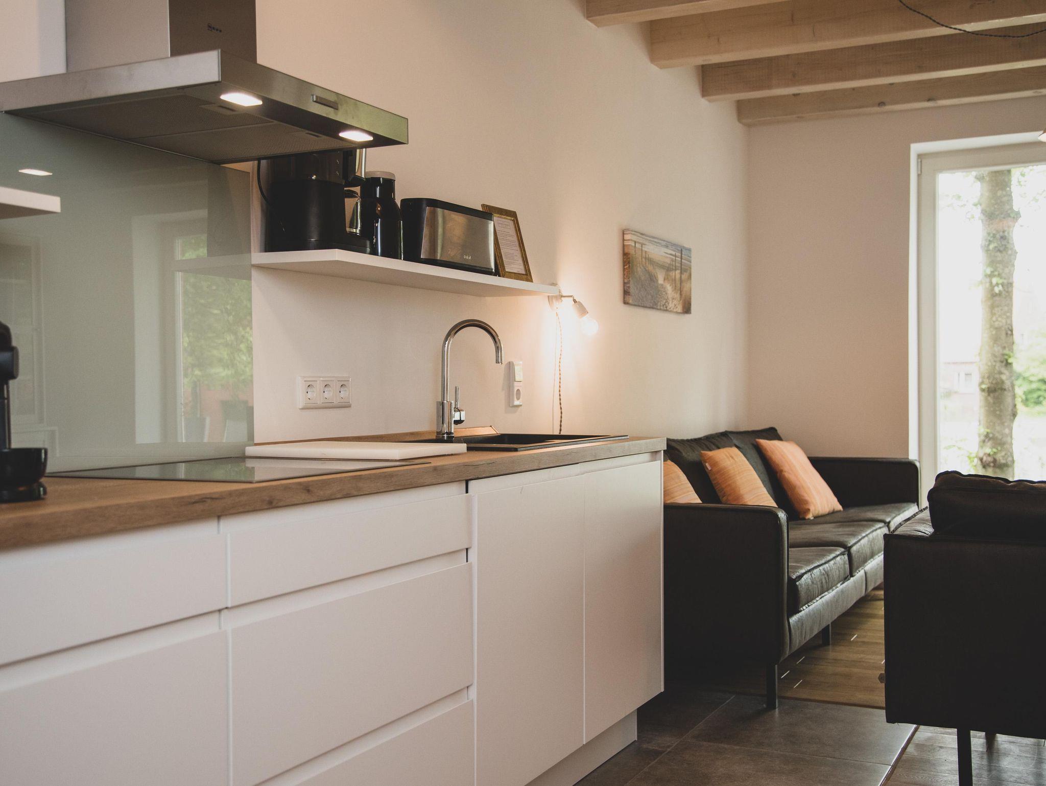 Der großzügige Wohn-, Ess- und Küchenbereich ist offen gestaltet und lädt zum geselligen Verweilen ein. Die von der Scheune her zugängliche Wohnung bietet mit 87 qm Wohnfläche bequem Platz und Ausstattung für bis zu 6 Personen. Die Terrasse ist bequem von Wohnbereich zugänglich. Terrassenmöbel, Sonnenschirm und Grill stehen zur Benutzung bereit.