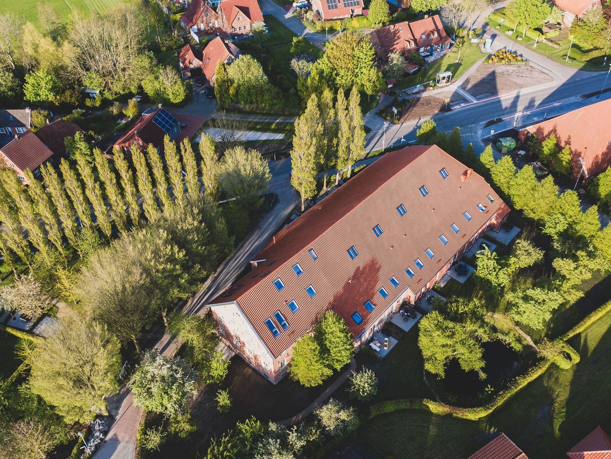 Unsere Wohnungen im Vorderhaus des Ferienhofs verfügen über hohe Decken mit durchgehend erhaltenen alten Deckenbalken. Die historischen Blockrahmenfenster und Fensterläden wurden in Handarbeit neu erstellt und runden den Anblick des denkmalgeschützten Gulfhofs ab. Im ehemaligen Scheunentrakt befinden sich durch bodentiefe Fenster helle und großzügig geschnittene Wohnungen. Alle Ferienwohnungen sind individuell, modern und mit viel Liebe zum Detail eingerichtet und bieten von der Terrasse einen erholsamen Blick auf die Grünflächen mit altem Baumbestand.