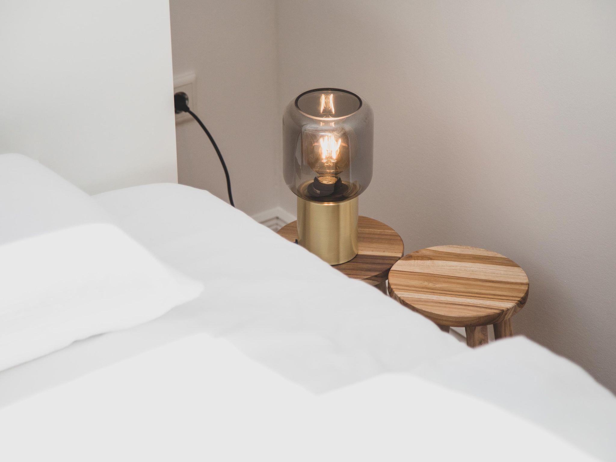 Hohe Decken, dicke Balken und große Fenster prägen das Erscheinungsbild der hellen Wohnung. Holzdielen, moderne Einrichtung, ausgesuchte Details und Bilder runden den Charme der Wohnung ab. Gartenmöbel, Sonnenschirm und Grill stehen zur Benutzung bereit. Schlafzimmer 1 bietet ein Doppelbett und den unverbauten Blick in den Garten und die Natur. Im zweiten Schlafzimmer finden Sie 2 Einzelbetten. Ein großzügiges Bad mit Dusche lädt zur Entspannung ein.