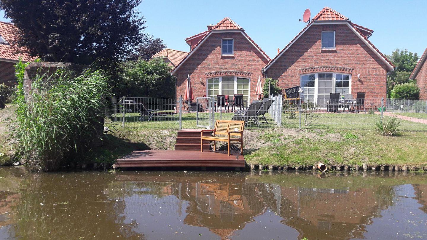Das hochwertige Ferienhaus mit eigener Sauna und Bootssteg liegt in traumhafter Lage direkt am „Greetsieler Tief“ in Eilsum.