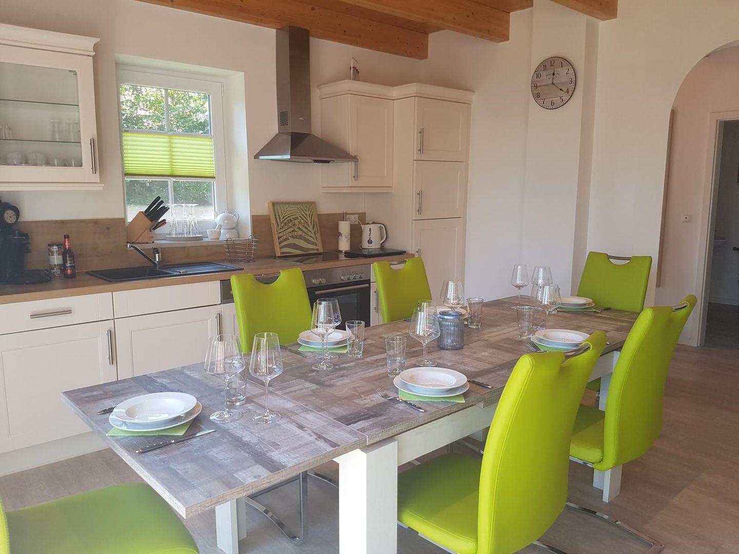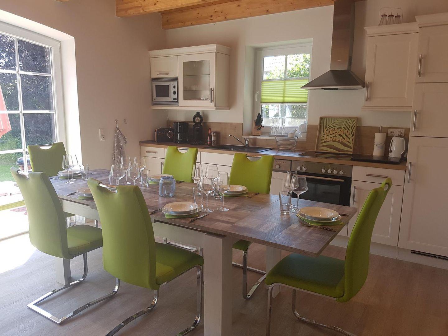 In der sehr gut ausgestatteten Küche mit Backofen und Ceranfeld, Geschirrspülmaschine, Mikrowelle, Senseo-Kaffeemaschine, Filter-Kaffeemaschine, Toaster, Mixer, Eierkocher uvm. bleiben keine Wünsche offen.