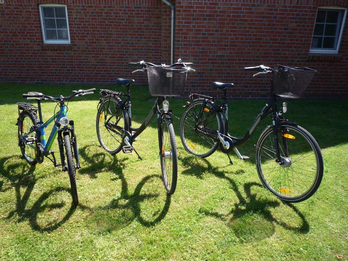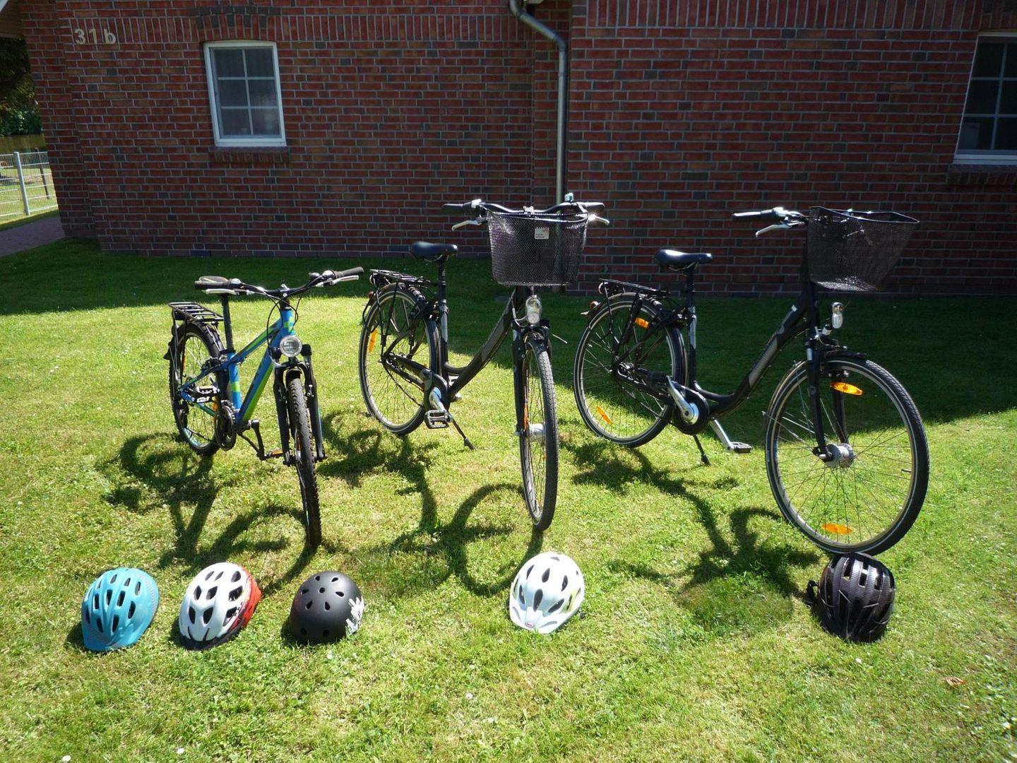 Mit den hauseigenen beiden Fahrrädern (ein Damen- und ein Herrenrad, beide mit Gepäckträger und Lenkradkorb) und einem Kinderrad (10-12 Jahre, alle Fahrräder ohne Gewähr für den Zustand und Haftung unsererseits) erreichen Sie auf befestigten Radwegen das malerische Fischerörtchen „Greetsiel“ nach vier Kilometern. Zum Grillen finden Sie einen Kugelgrill und Zubehör.