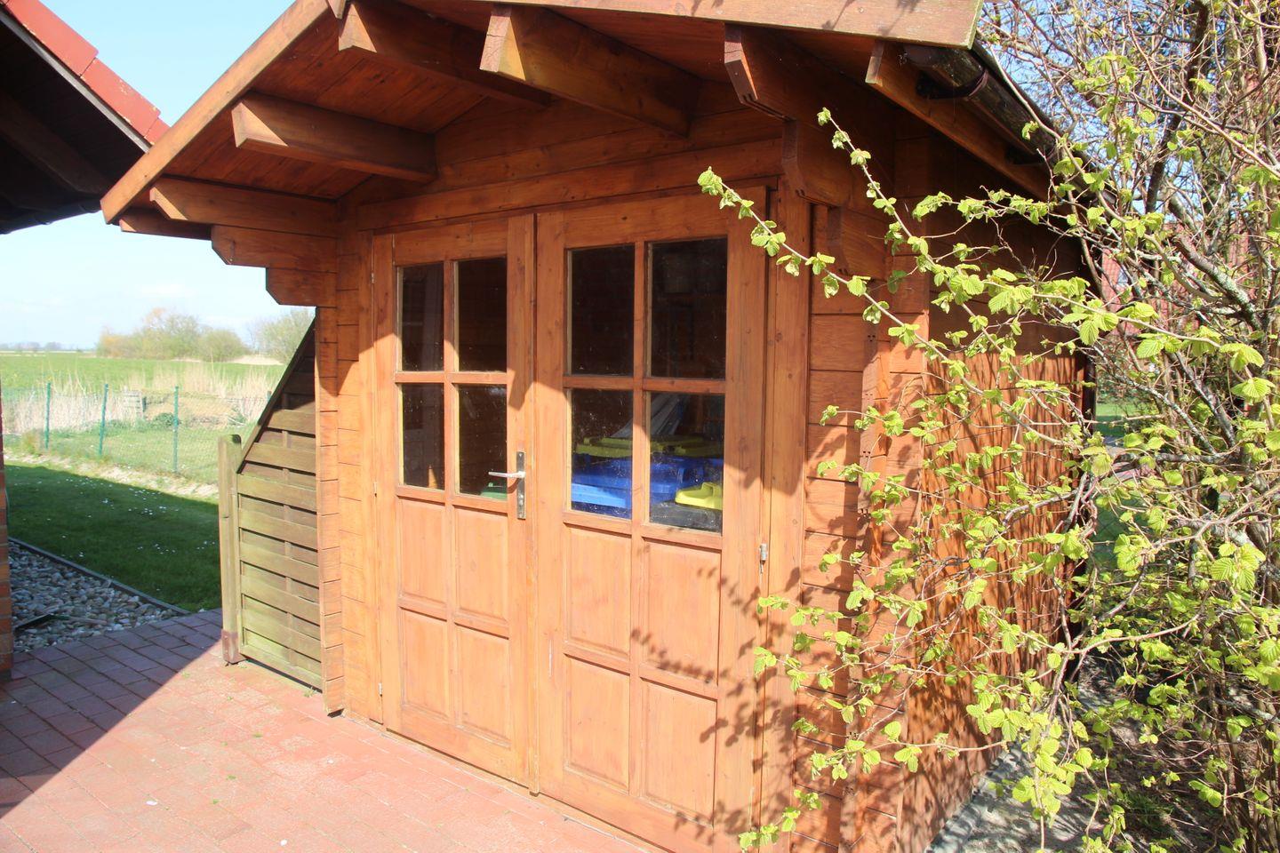 Unmittelbar hinter dem Haus verläuft ein Siel (Bade-u. Angelmöglichkeit), 3 sep. Schlafräume (eins davon im EG), 2 Bäder (eins davon im EG), 1 Wohnraum mit Kamin, Essecke und offene Küche. Freier Blick über Wiesen. Zum Abstellen Ihrer Fahrräder gibt es ein Gartenhaus.