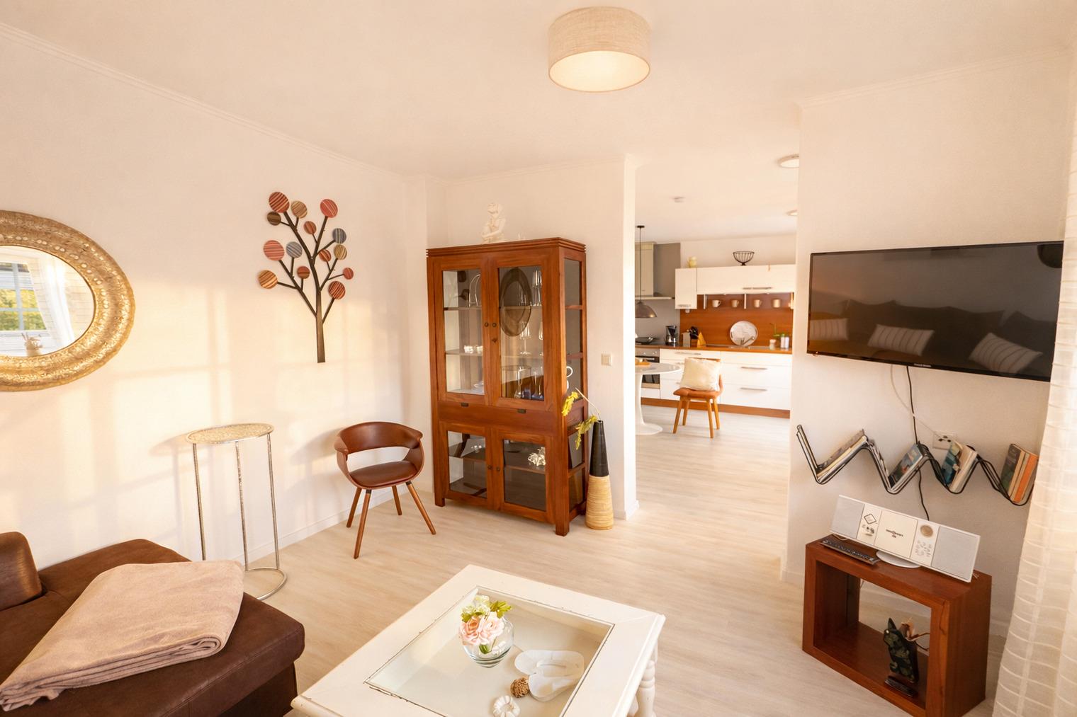Das gemütliche und helle Wohnzimmer hat einen Smart-TV. Sie können also mit Ihrem z.B. Netflix Passwort auf dem Fernseher Ihre Filme schauen. Im Wohnzimmer relaxen Sie auf der gemütlichen Eckcouch.
