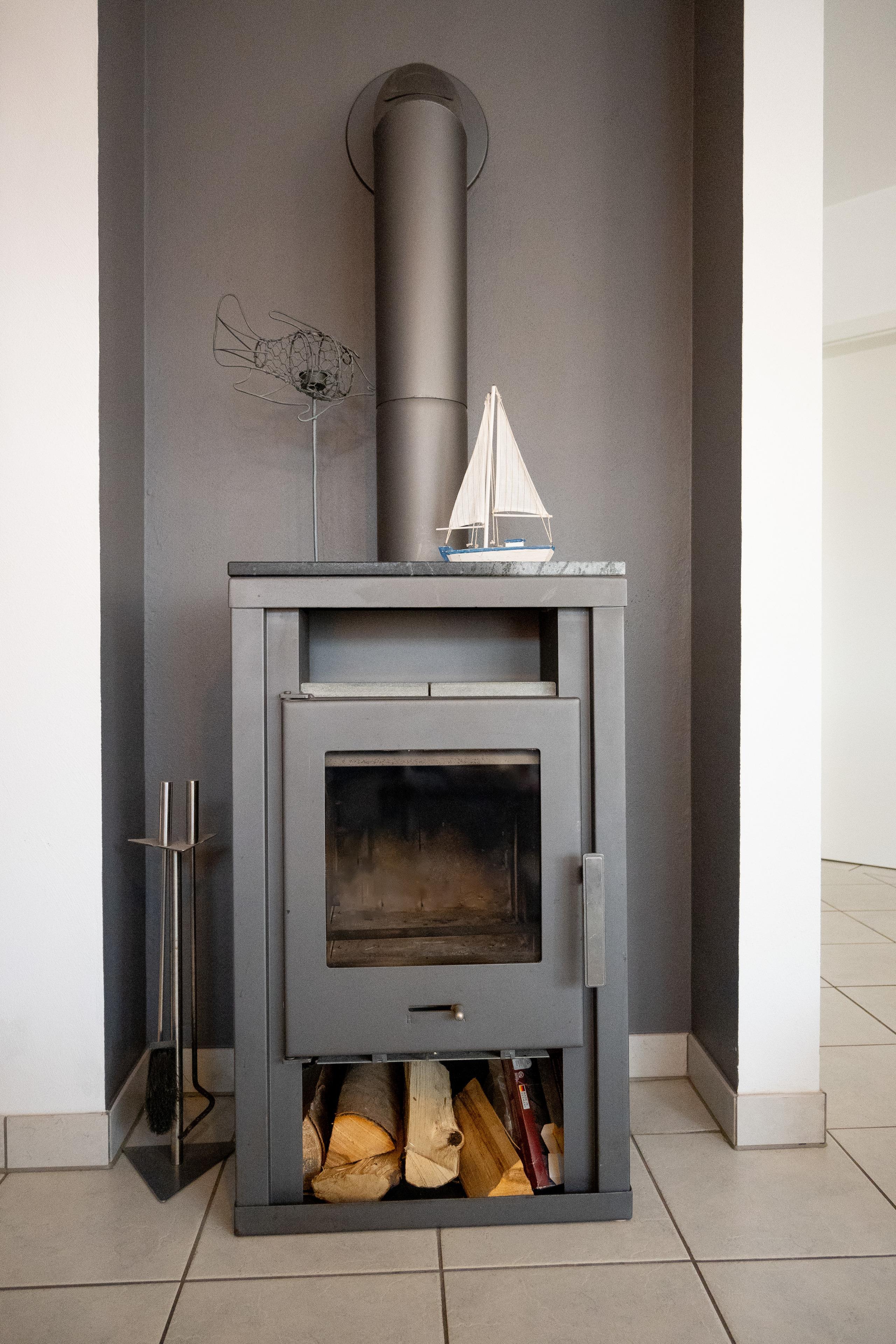 Das Ferienhaus ist gefliest und hat neben dem Kaminofen eine Fußbodenerwärmung.