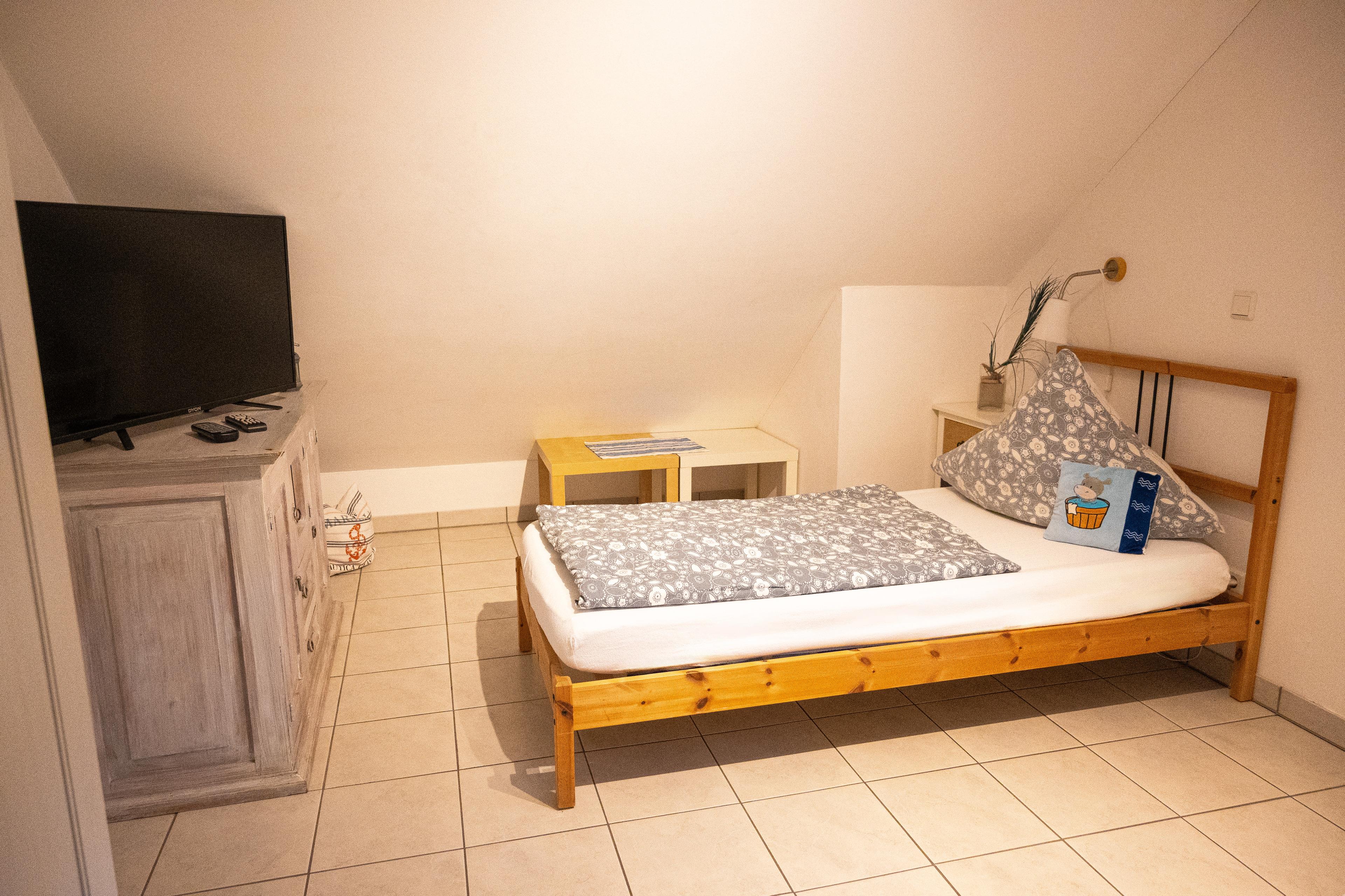 Im OG befinden sich zwei weitere Schlafzimmer mit je zwei Einzelbetten. Ein Schlafraum ist mit einem weiteren LED-TV & DVD-Player ausgestattet. Das zweite Schlafzimmer mit Grachtenblick und Spielreich mit Schreibtisch bieten ausreichend Platz und Spielmöglichkeiten für unsere kleinen Gäste.