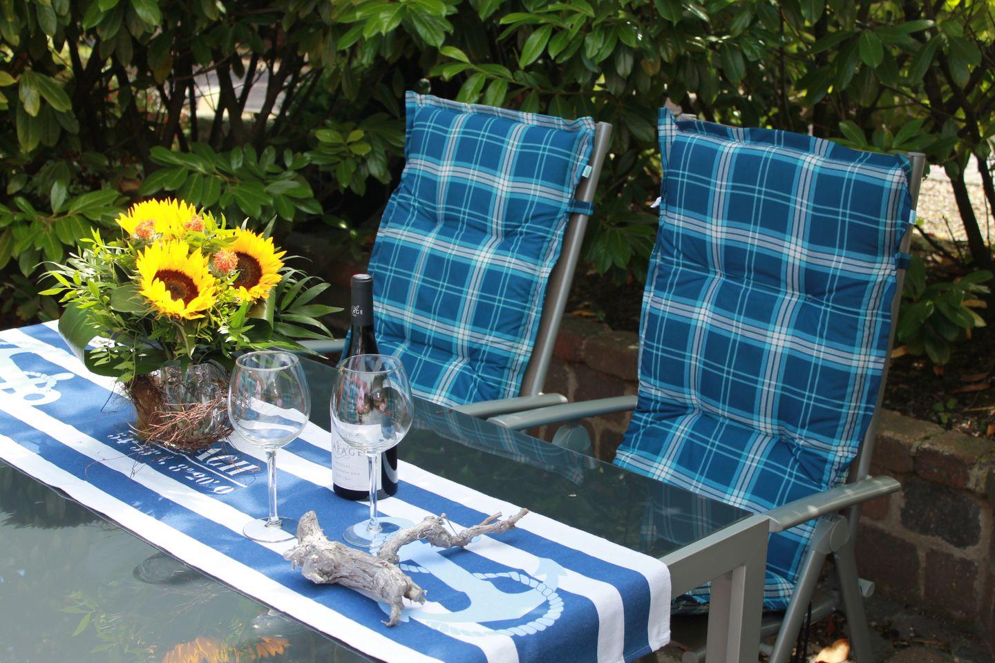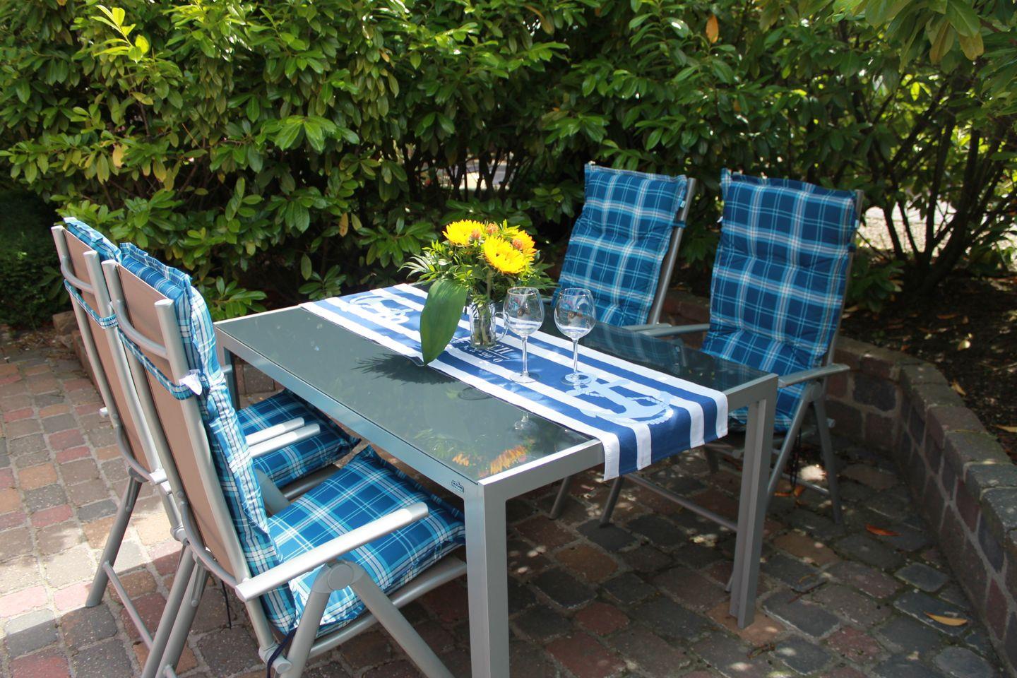 Auf der Terrasse laden gemütliche Gartenmöbel zum Entspannen und Genießen ein. Im Garten ist für unsere kleinen Gäste viel Platz zum Spielen.