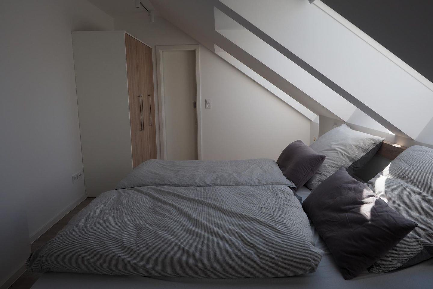 Die gesamte Wohnung verfügt über Fußbodenheizung, die Balkontür ist mit einer Fliegengittertür geschützt. Alle Fenster sind mit Plissees bestückt, im Dachgeschoss sind elektrische Außenrollläden vorhanden. In der Wohnung ist auch ein Babybett für Kinder bis 15kg kostenlos verfügbar.