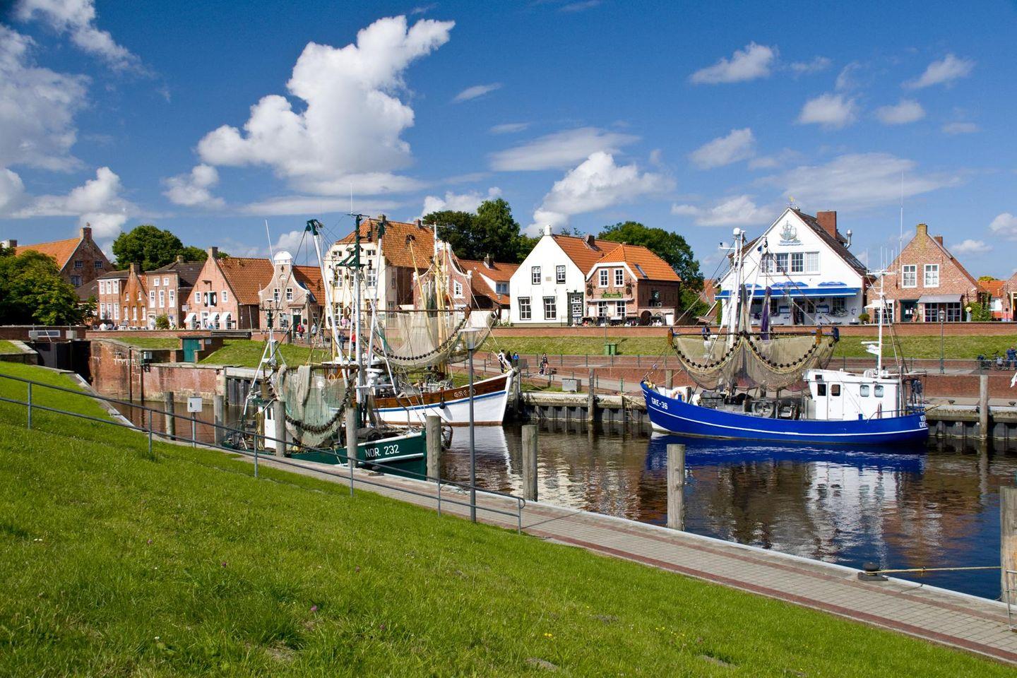 Das kleine Warfendorf Pilsum überzeugt abseits des großen Trubels in Greetsiel mit seinen kleinen Gassen und urigen Häusern. Der historische Ortskern mit seiner Kirche ist immer einen Spaziergang wert, natürlich auch der Pilsumer Leuchtturm direkt am Deich. Greetsiel ist mit dem Fahrrad oder Auto auch zügig erreicht.