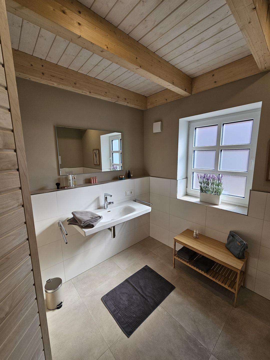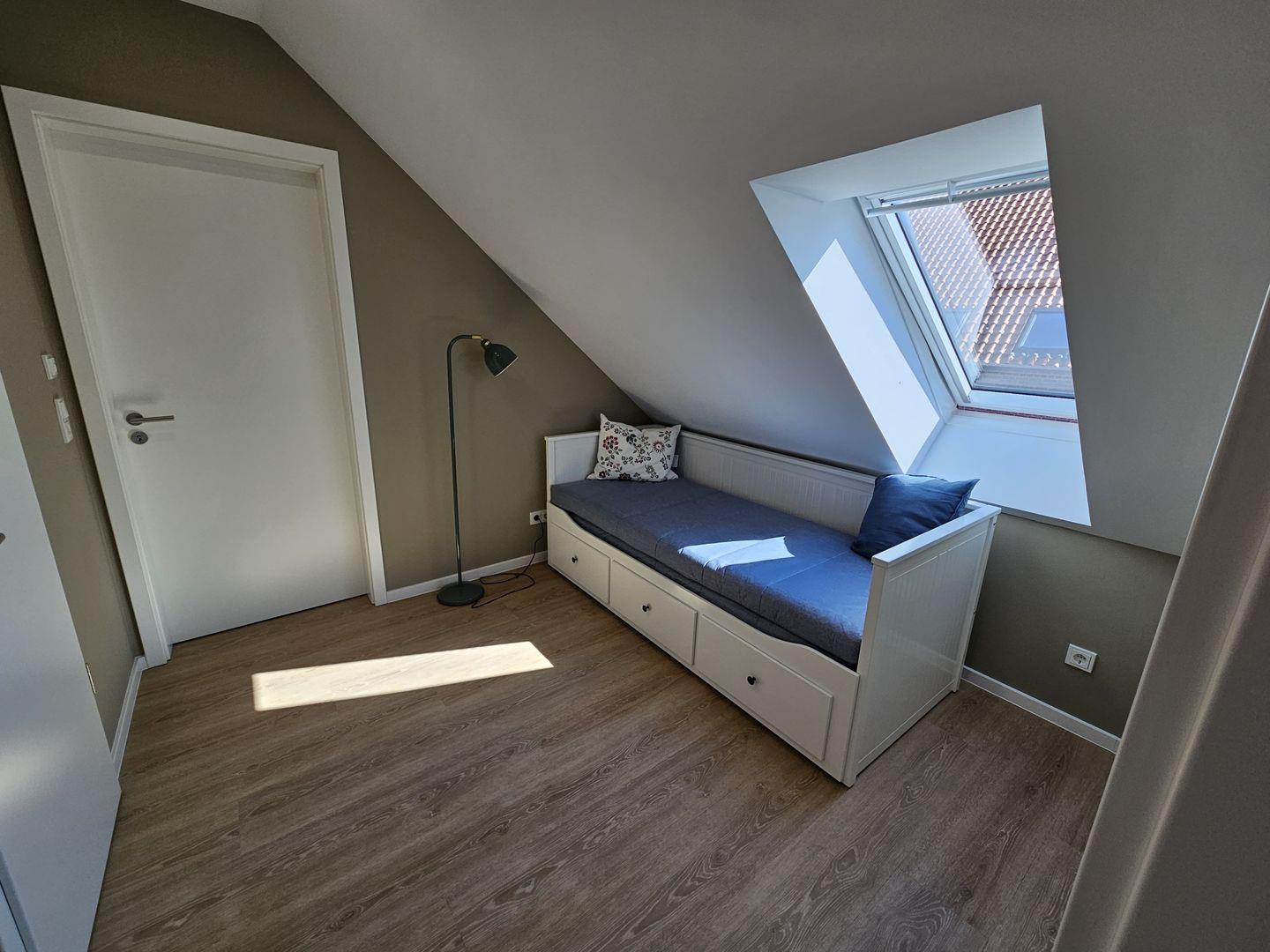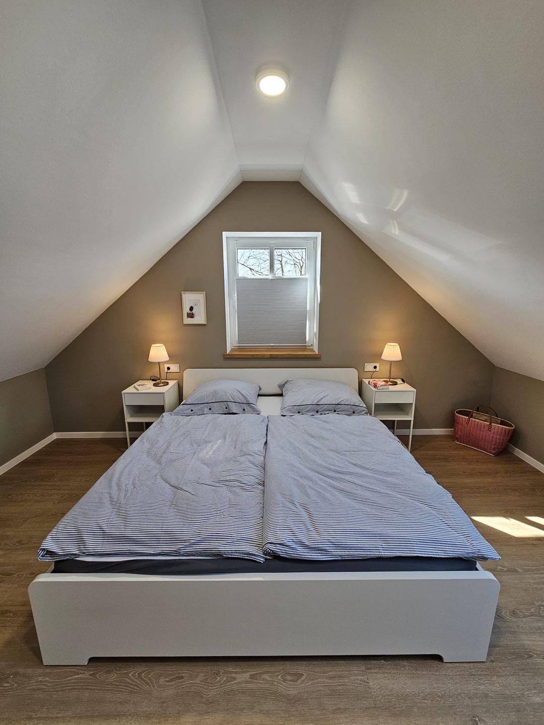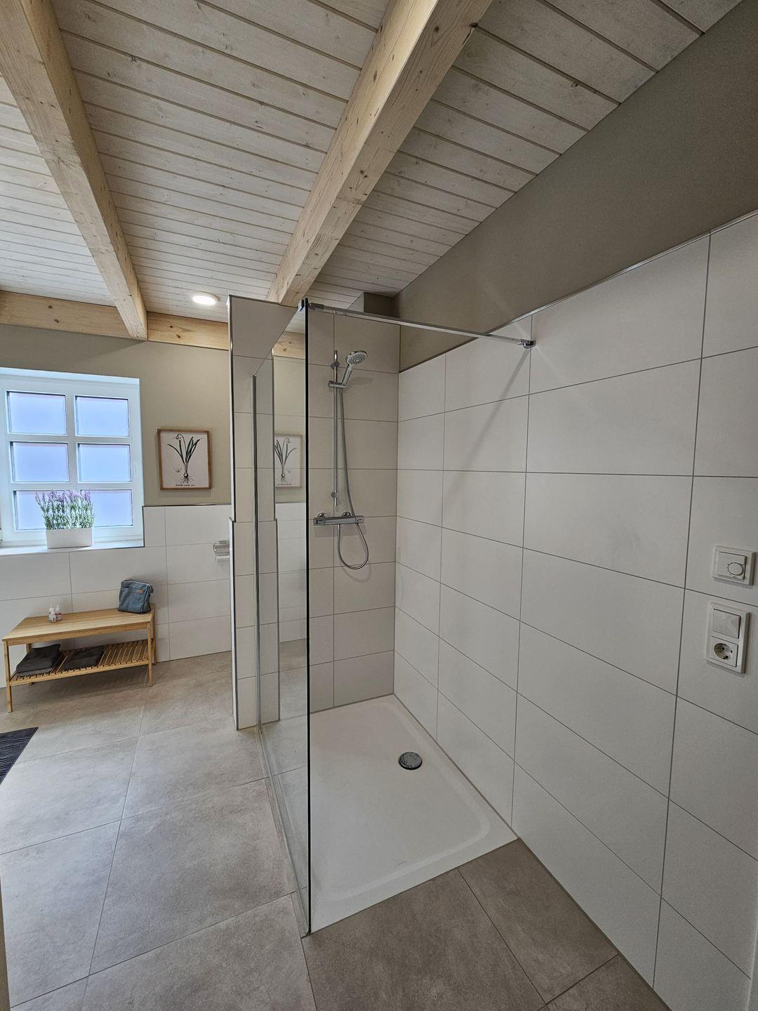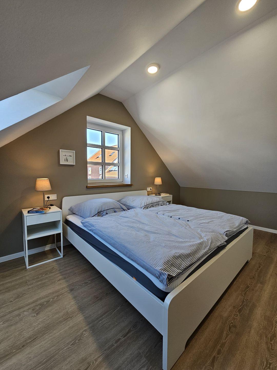 Das Ferienhaus Mühle 7 verfügt über insgesamt zwei Schlafzimmer, die sich hervorragend für erholsame Nächte eignen. Weiterhin stehen Ihnen zwei Badezimmer zur Verfügung, die mit bodengleichen Duschen und modernen Waschbecken ausgestattet sind. Zudem gibt es eine Waschmaschine, die zur Eigennutzung bereitsteht, sowie die Erstausstattung an Handtüchern und Bettwäsche. Ein zusätzliches Bett im Flur des Obergeschosses erlaubt es weiteren 2 Personen bequem zu nächtigen. Bitte beachten Sie, dass dieser Raum nicht von den anderen Räumen abgetrennt ist.