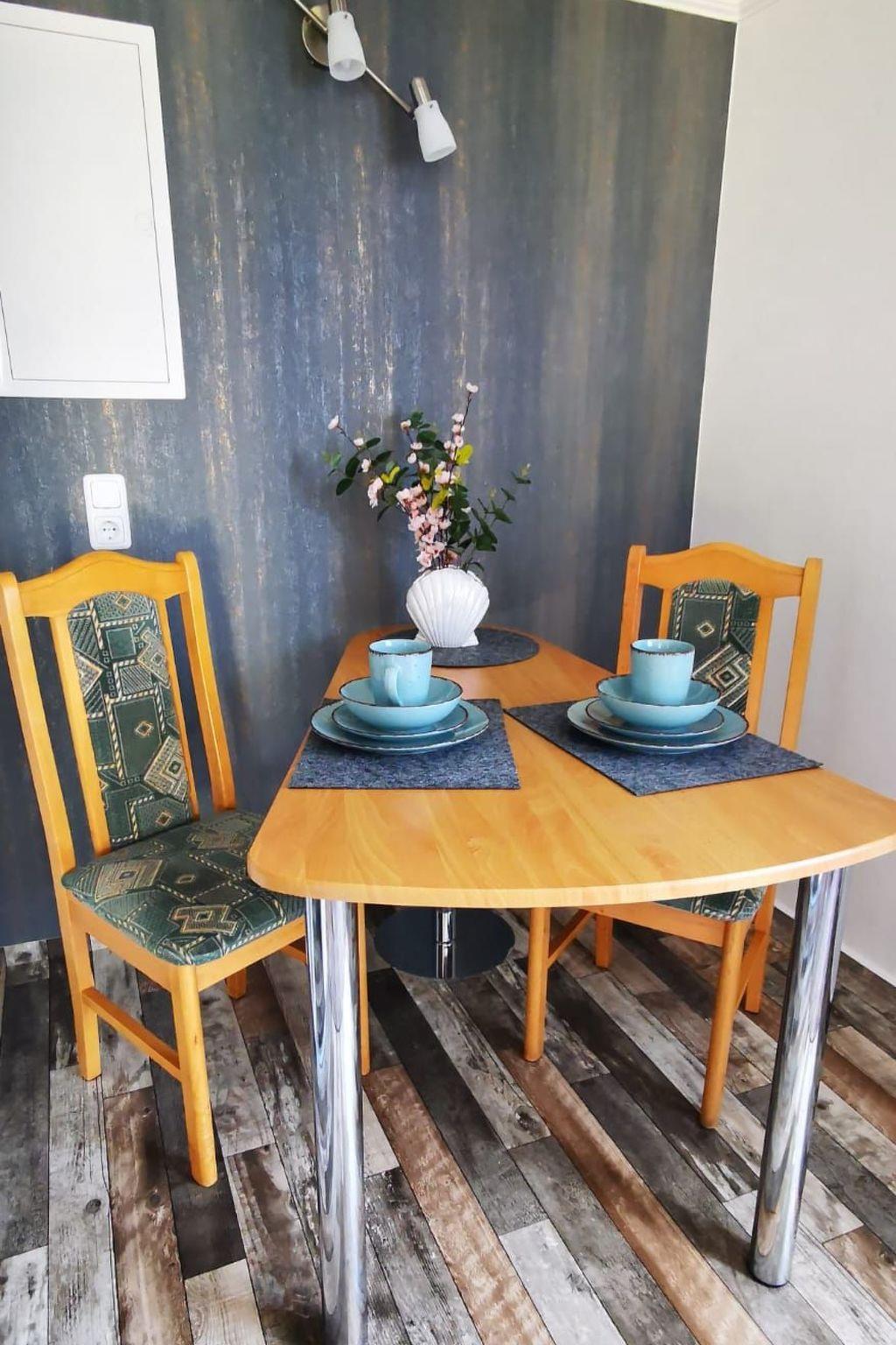The flat:1 living/dining area with open-plan kitchen1 bedroom with a 180 cm x 190 cm bed1 bathroom with WC and showerCovered seating area directly next to the flat Barbecue available Rowing boat available for free use Covered storage space for bicycles behind the apartment Brief descriptionMiscellaneous : Non-smoking house