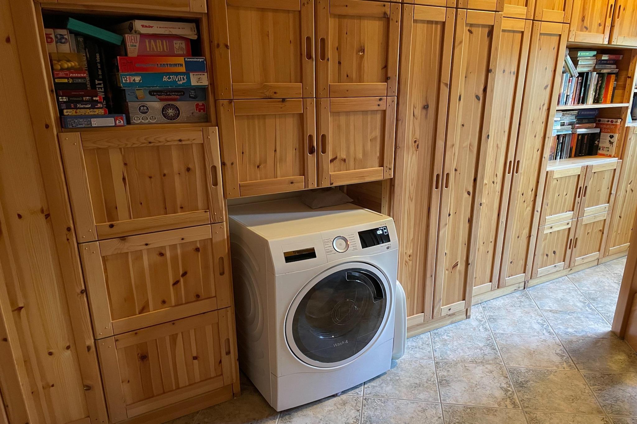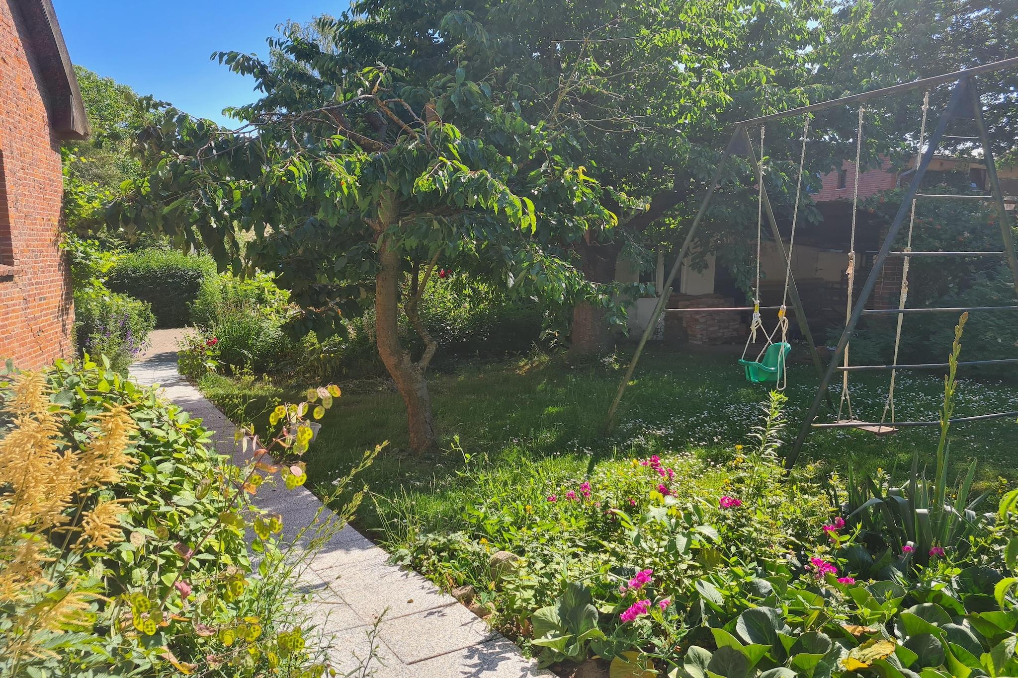 På 1. etage: (Stue(Fjernsyn, spisebord, sofahjørne), Køkken(brødrister, kaffemaskine(kaffepude), ovn, combi-mikroovn, opvaskemaskine , elektriske kogeplader), soveværelse(dobbeltseng), soveværelse(enkelthøjseng, enkelthøjseng), badeværelse(bruser, håndvask, toilet, føntørrer)) havemøbler, parkering, sandkasse, legeredskaber, barnestol, Haveskur,