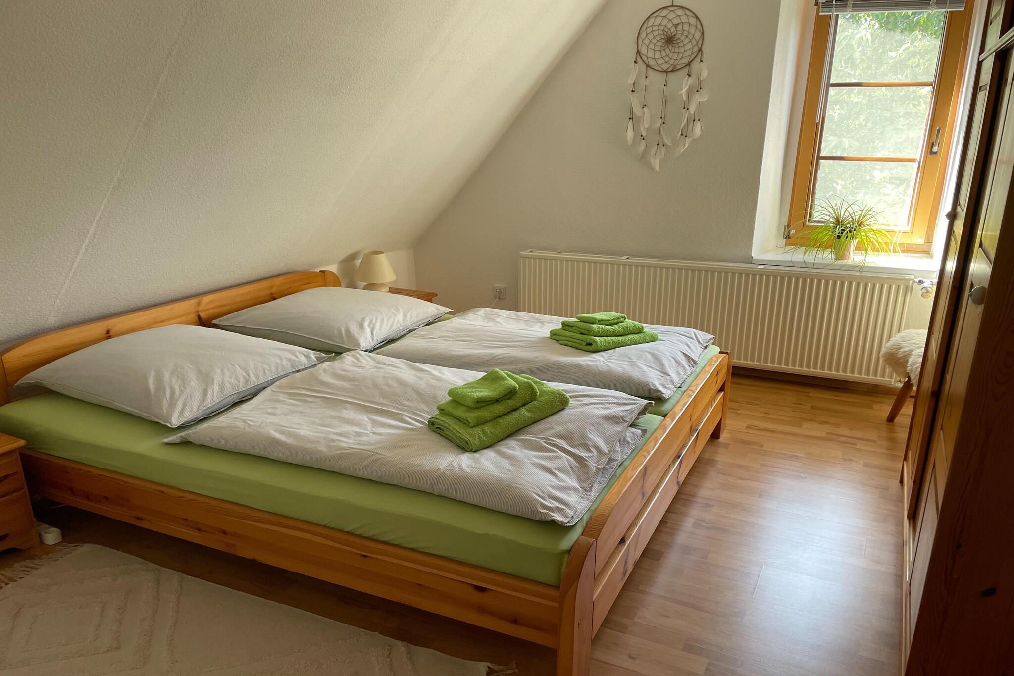 Beliggende i den rolige landsby Krusenhagen, kun 7 km fra den historiske havneby Wismar, er denne lyse og praktiske lejlighed på 1. sal ideel for familier, der søger en fredelig kystflugt. Stuen byder på et hyggeligt opholdsområde, spisebord og tv, mens det veludstyrede køkken har elektriske kogeplader, ovn, kaffemaskine med pad, kombineret mikroovn, brødrister og opvaskemaskine - perfekt til nemme hjemmelavede måltider. Sovearrangementer inkluderer et soveværelse med dobbeltseng og et andet soveværelse med to enkelt loftssenge - fantastisk til børn eller teenagere. Badeværelset er udstyret med bruser, toilet, håndvask, hårtørrer og varme for komfort året rundt. Udenfor kan du nyde en privat have med møbler, sandkasse, legeredskaber og et haveskur til ekstra opbevaring. En høj stol er til rådighed, og kæledyr er også velkomne. Med et bageri, restauranter og offentlig transport inden for 6 km, og Hamborg Lufthavn 100 km væk, forener dette sted landskabelig charme med praktisk bekvemmelighed.